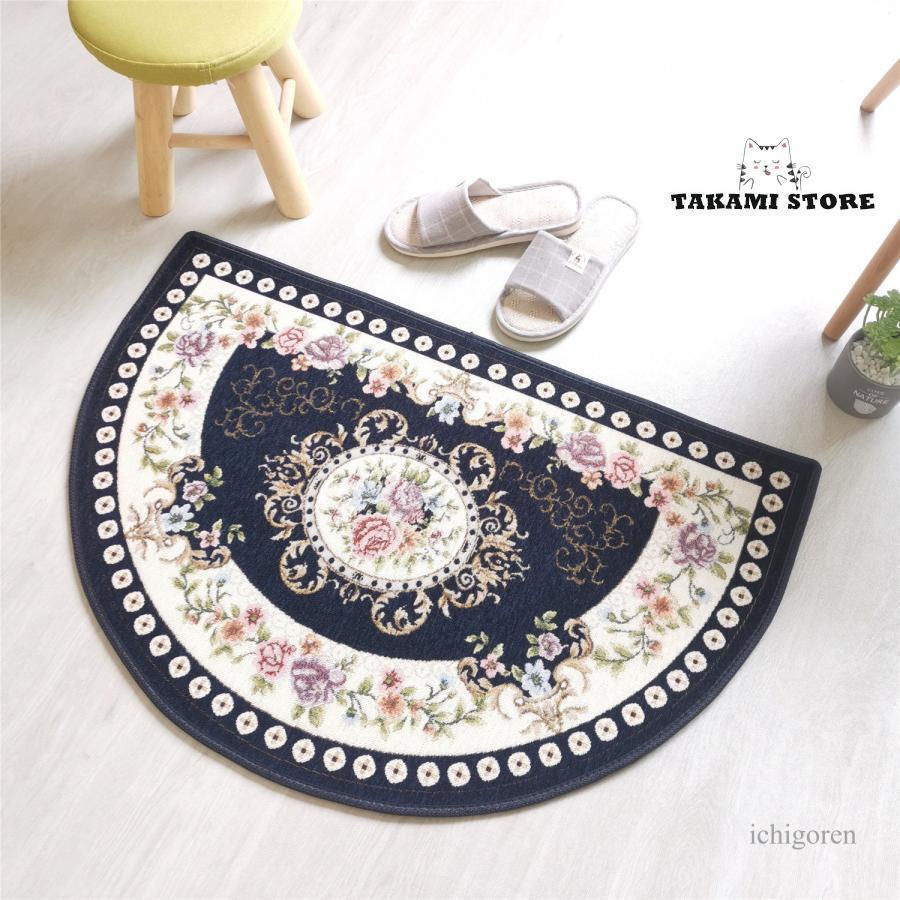 半円玄関マット 花柄 薄型 屋内 室内 キッチン用品 食器 調理器具 豊富 ダークブルー コーヒー レッド ブルー 45*70cm 50*80cm 60*90cm