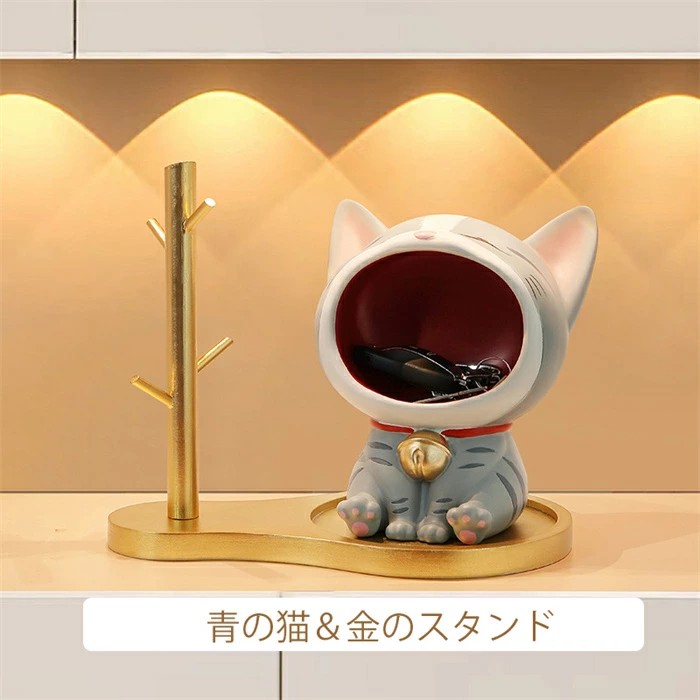 置物 飾り 玄関収納 ビッグマウス猫 2色の猫&銀のスタンド ピンク猫&銀のスタンド 青の猫&金のスタンド 黄色の猫&金のスタンド 黒の猫&金のスタンド
