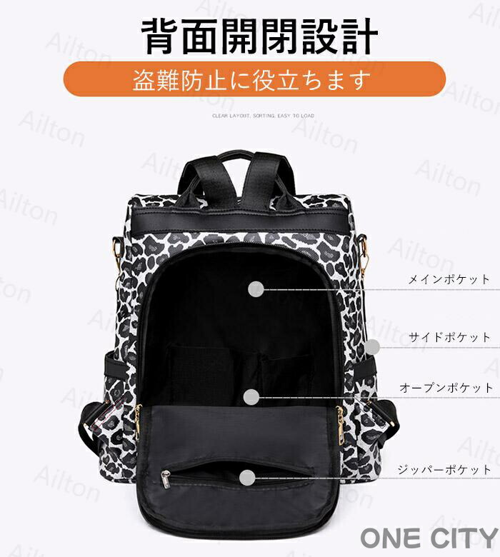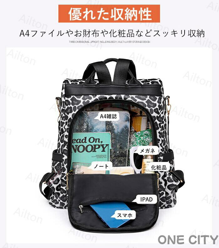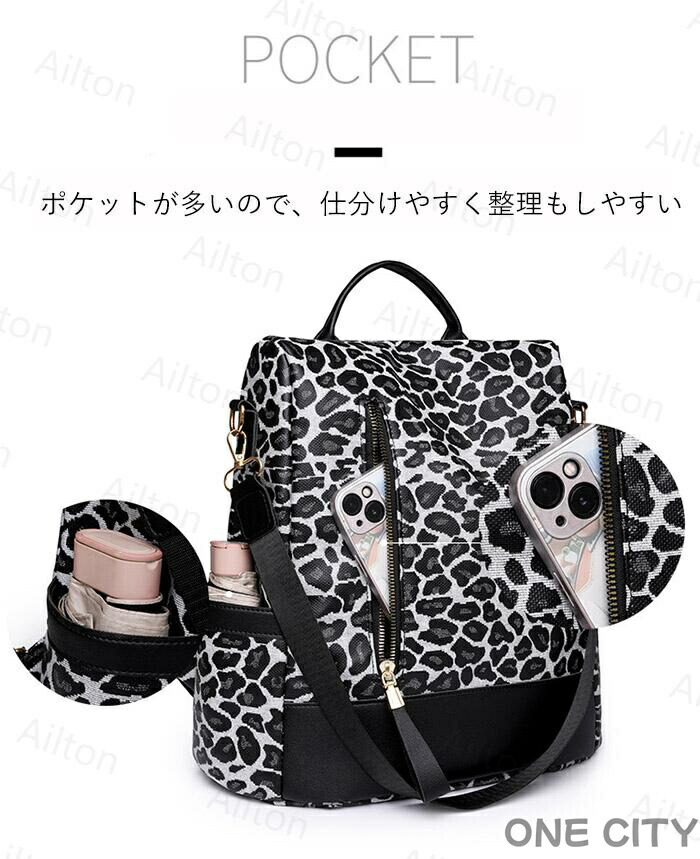 リュック ヒョウ柄 防犯バッグ バック バッグ 小物 ブランド雑貨 超目玉商品 ブラック ホワイト ブラウン