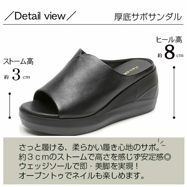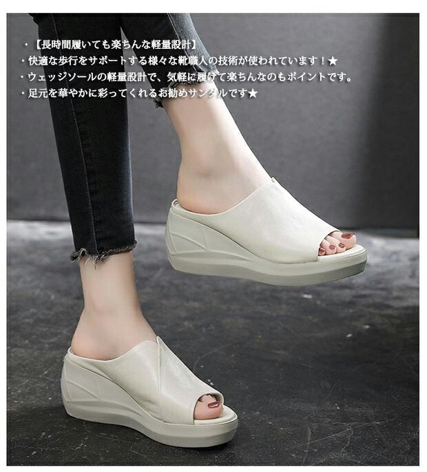 厚底 サンダル レディース オフィスシューズ オフィススリッパ ウエッジサンダル 歩きやすい 軽い 大きいサイズ 25.0 オフィス スリッパ クロッグ ミュール 黒 7cmヒールで美脚 脚長 快 白