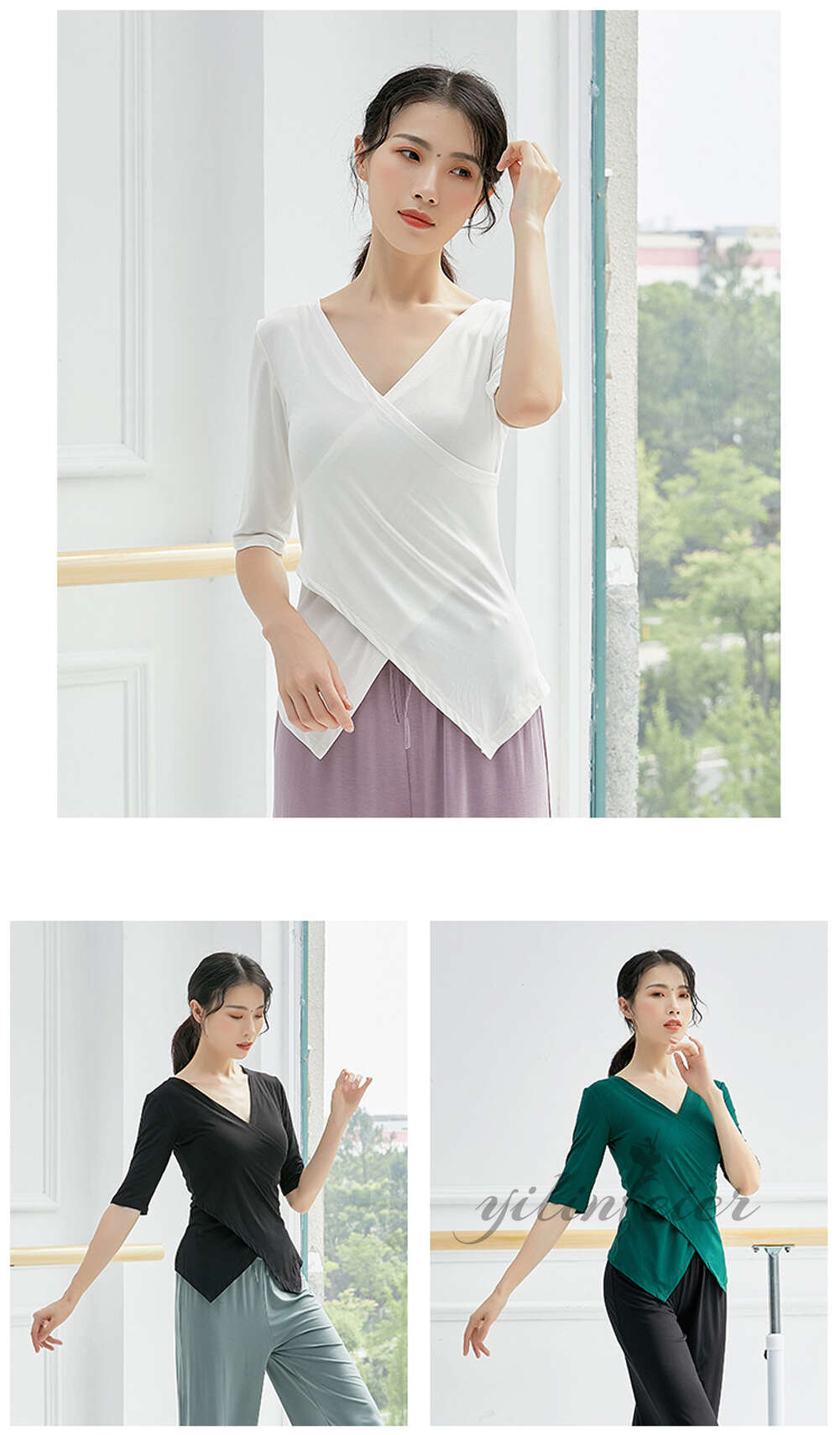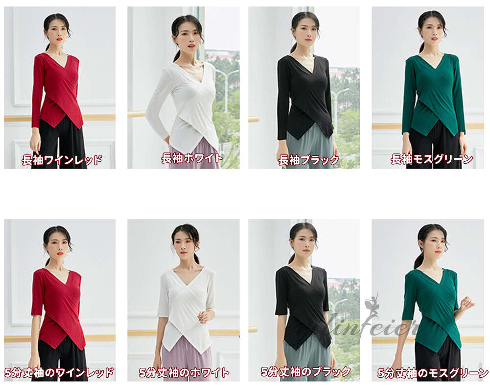 コンテンポラリー バレエ 衣装 ダンス S M L XL 2XL 3XL 5分丈袖のブラック 5分丈袖のワインレッド 5分丈袖のホワイト 5分丈袖のモスグリーン 5分丈袖のイエロー 5分丈袖のライトブルー 5分丈袖のピンク 長袖ブラック 長袖ワインレッド 長袖ホワイト 長袖モスグリーン 長袖イエロー 長袖ライトブルー 長袖ピンク