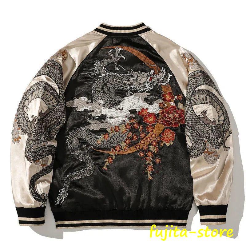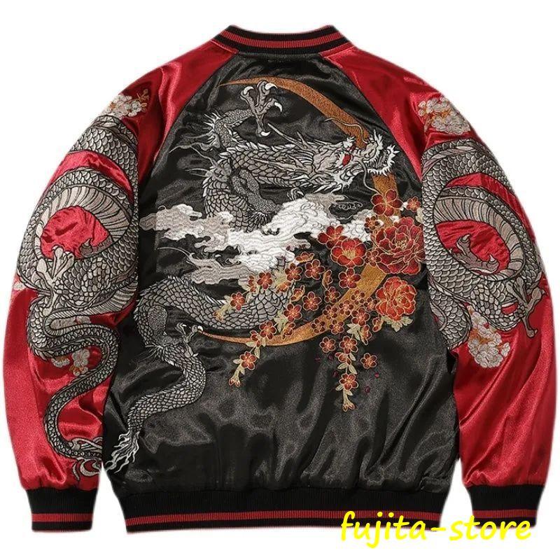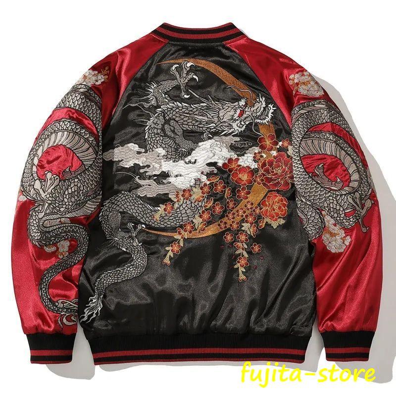 スカジャン メンズ 鳳凰柄 フライトジ コート ジャケット 新作 ベージュ レッド S M L XL 2XL 3XL 4XL
