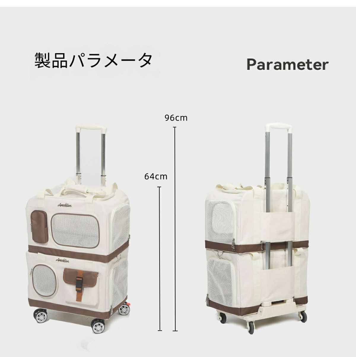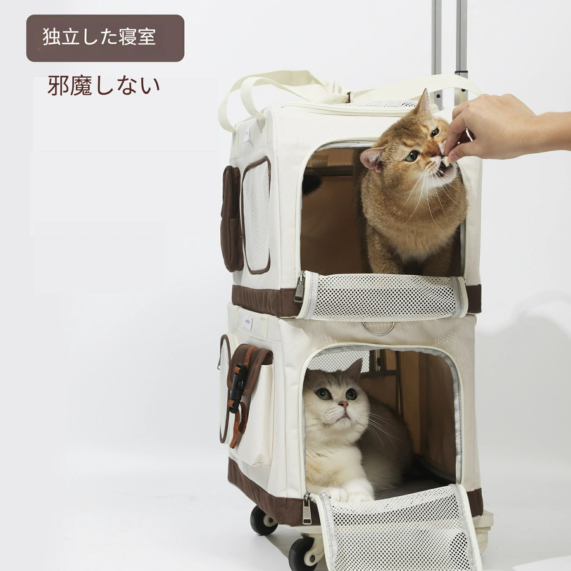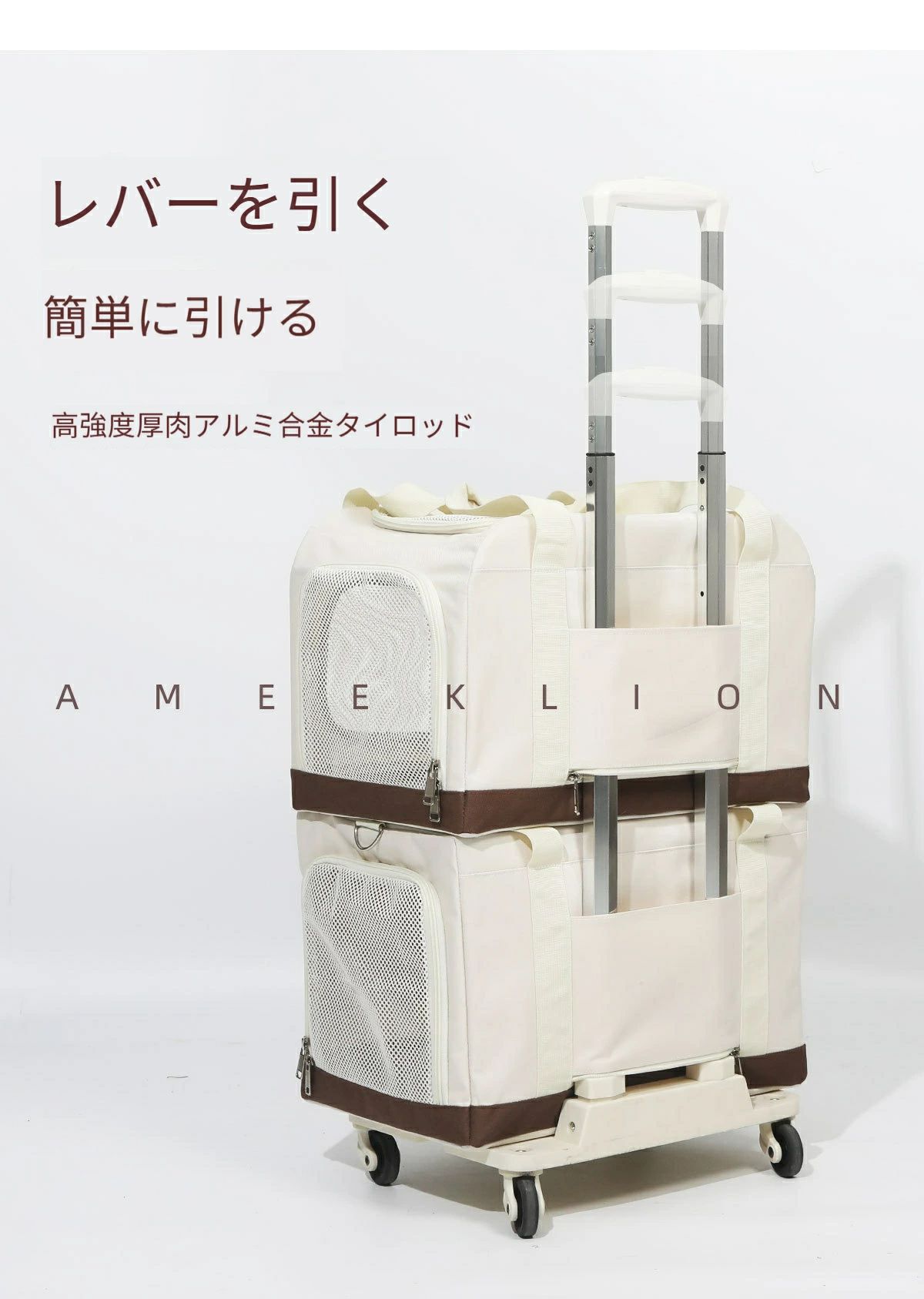ペットキャリーバック 2層 2匹 猫 猫用品 キャリーバッグ カート リュックキャリー 新作 上部バッグ(ベージュ) 下部バッグ(ベージュ) 二層バッグ(ベージュ)+トロリー
