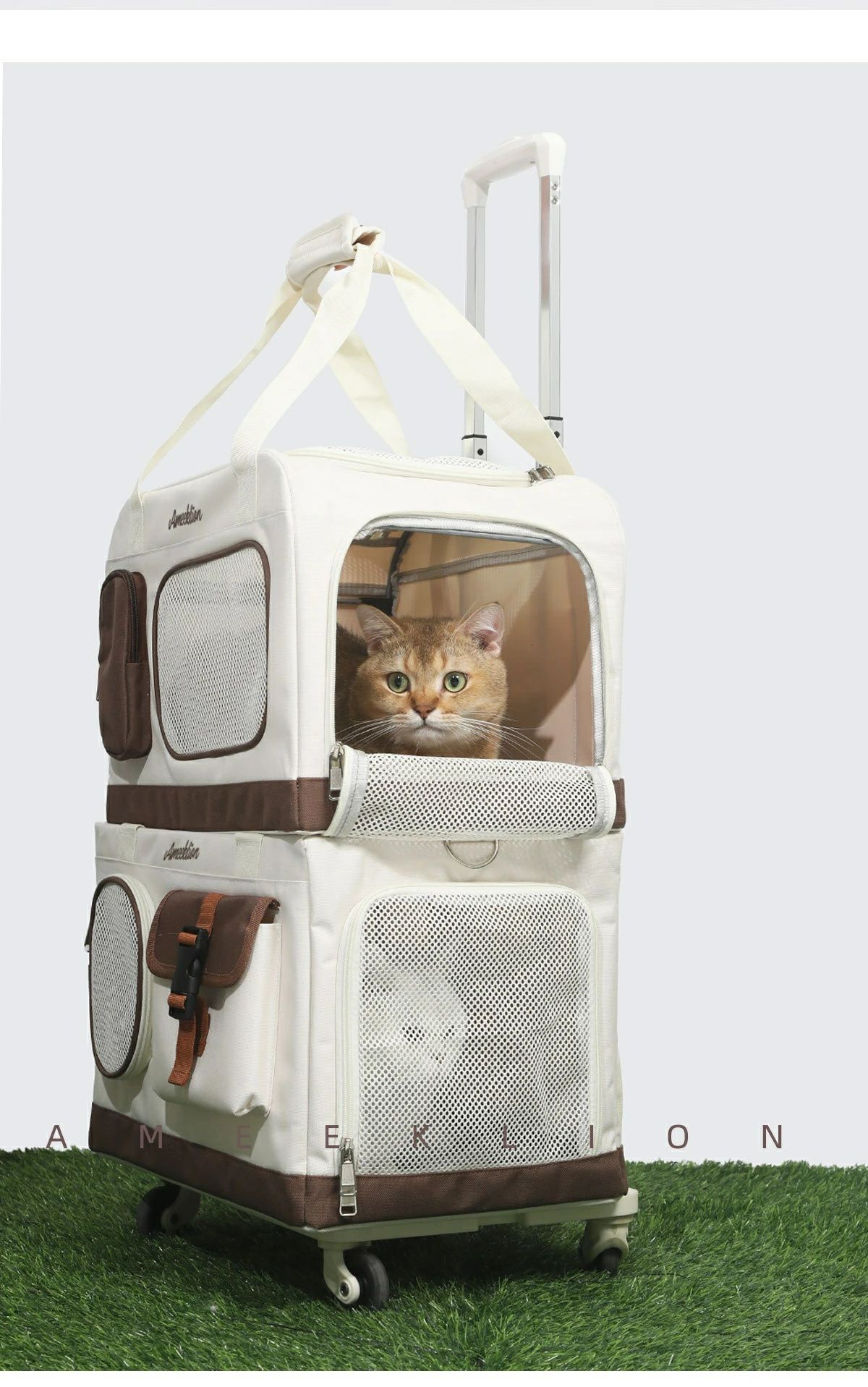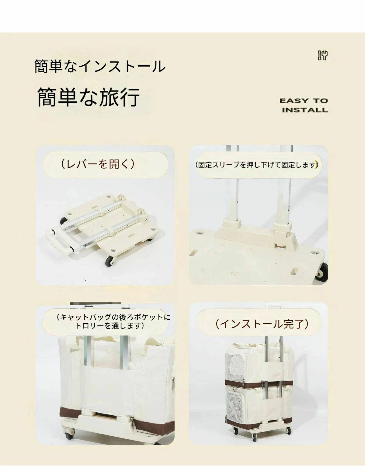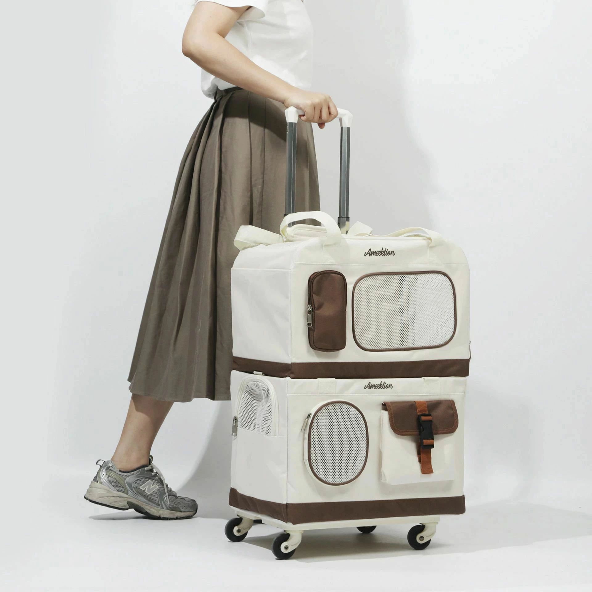 ペットキャリーバック 2層 2匹 猫 猫用品 キャリーバッグ カート リュックキャリー 新作 上部バッグ(ベージュ) 下部バッグ(ベージュ) 二層バッグ(ベージュ)+トロリー