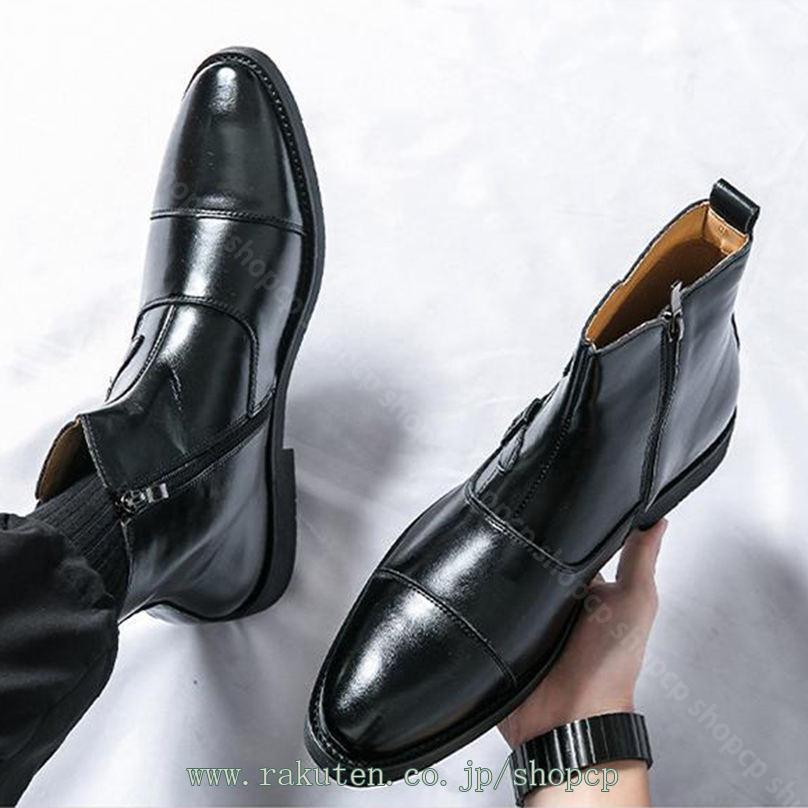 チェルシーブーツ メンズ ショートブーツ 大きいサイズ サイドジップ 革靴 カジュアル ハイカット 軽量 耐摩耗性 レザー風 ビジネス ロングノーズ 通勤 フォーマル 歩きやすい 紳士