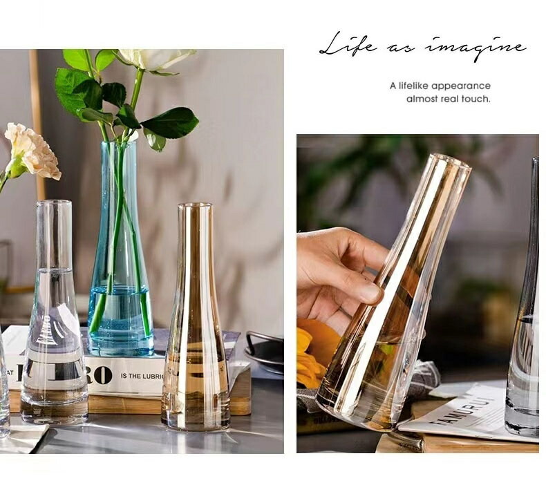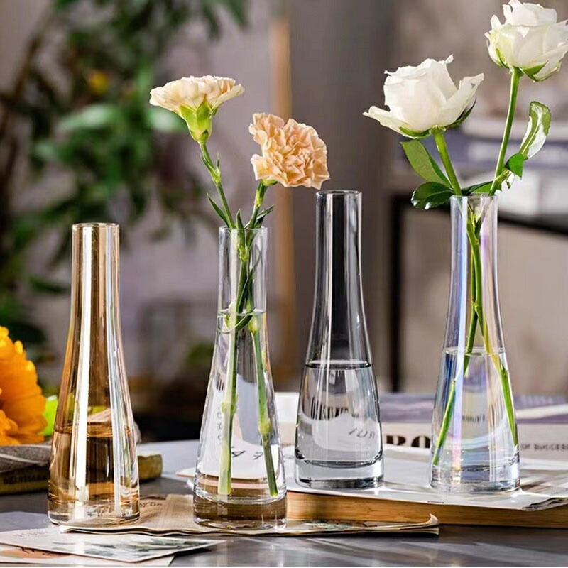 花瓶 ガラス おしゃれ 花器 一輪挿し 透明 多色 アンバー グレー