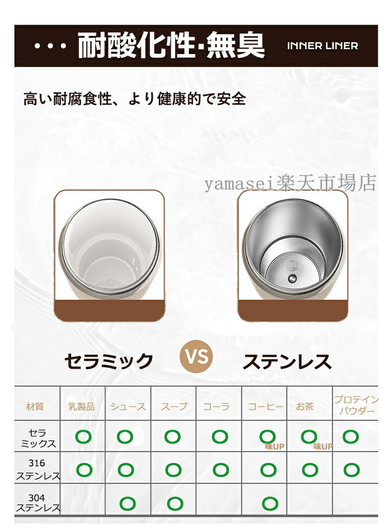 セラミック タンブラー セラミックコー 弁当箱 水筒 水筒 マグボトル 人気 ホワイト ベージュ シルバー ブラック ピンク セラミック(インナー) 316ステンレス(インナー)