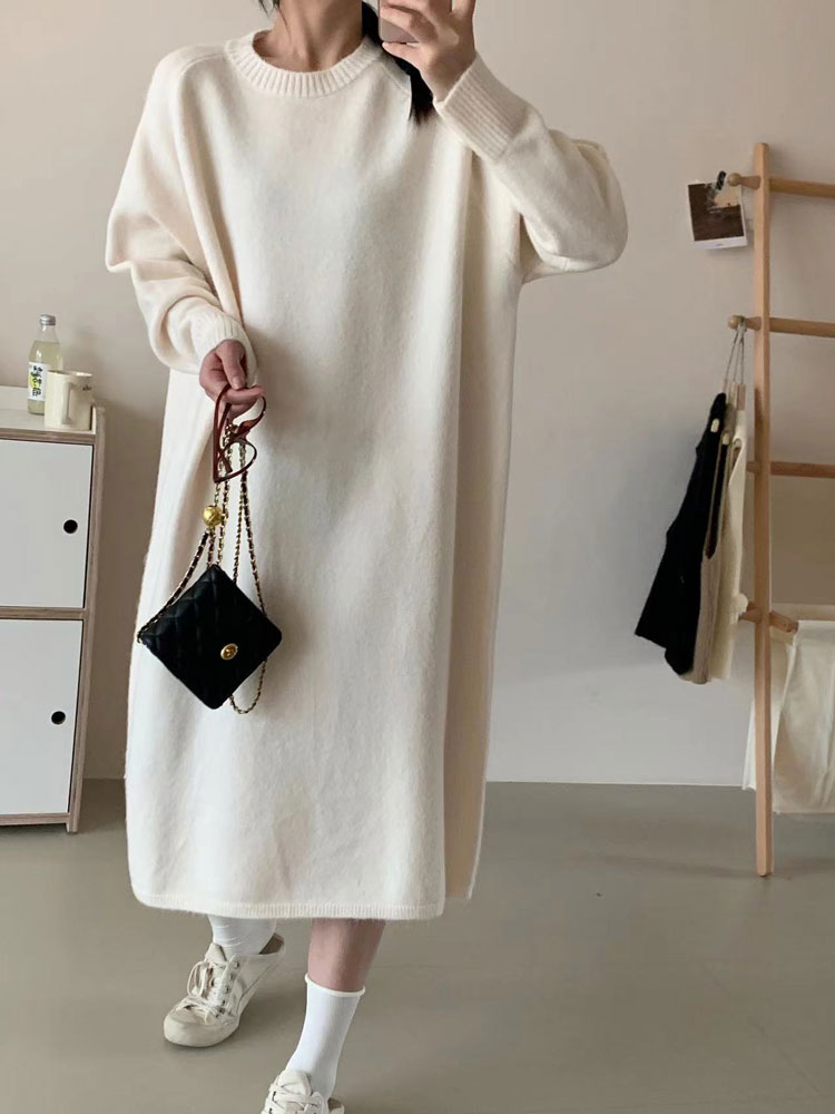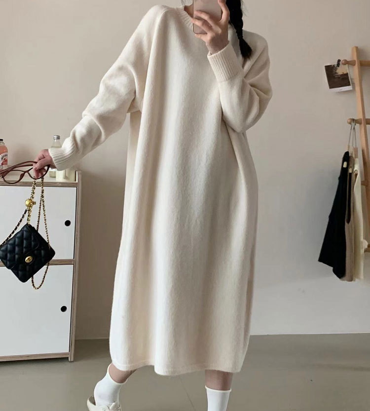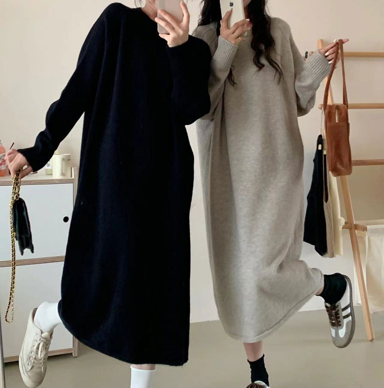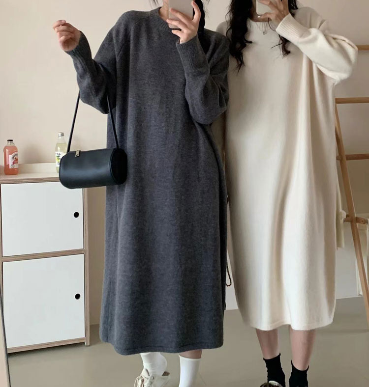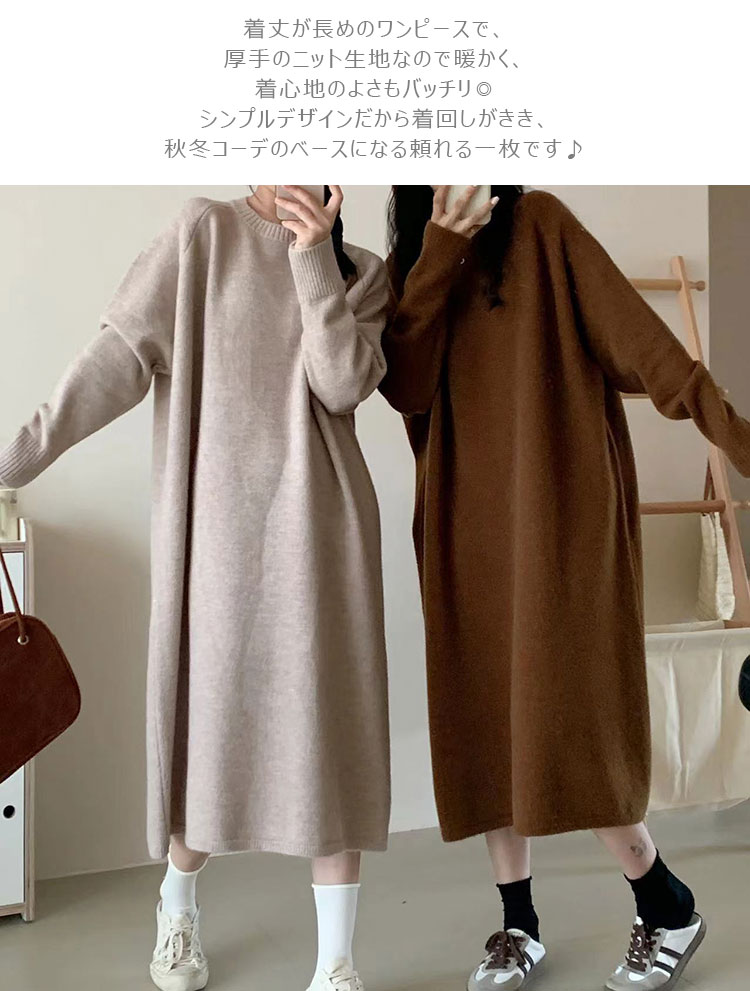 ワンピース クルーネック ニットワンピ ワンピース 新登場! ブラック ブラウン グレー アイボリー ベージュ グレージュ