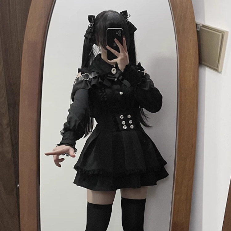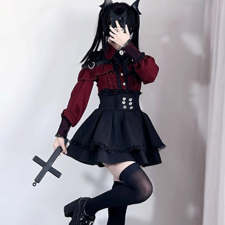 春 ワンピース レディース 病みかわい レディースファッション 豊富な品揃え レッド(上下セット) グレーブルー(上下セット) ブラック(上下セット) S M L XL