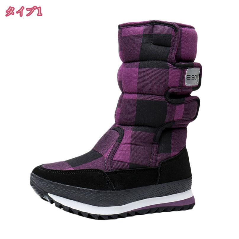 防水 防寒 スパイク スノーブーツ チェック ミドル 北海道 冬靴 雪道 防滑 レディース ブーツ 婦人靴 アウトドア レディースブーツ 防滑の綿靴 雪靴 通学 レディースシューズ