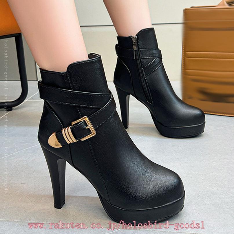 ブーティー ハイヒール 厚底 ブーツ レディース ピンヒール サイドジップ アンクルブーツ ヒール10.5cm 大きいサイズ ショートブーツ 歩きやすい ラウンドトゥ 痛くない 冬 ブーティ 袴ブ 秋