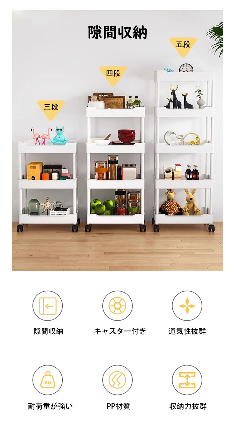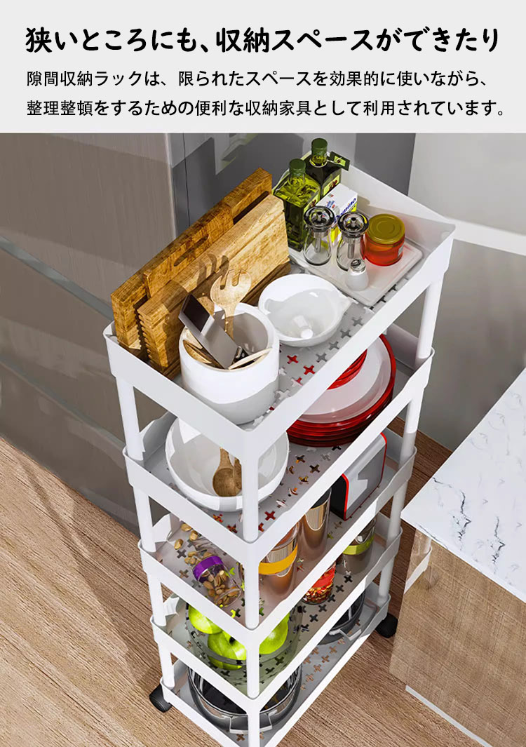 キッチンワゴン 隙間収納 スリム キッチンラック キャスター付き 収納棚 すきま収納 収納ワゴン キッチン収納カート おしゃれ 収納ラック 隙間ラック 3段 4段 スリムワゴン 細い棚 調味料棚 5段