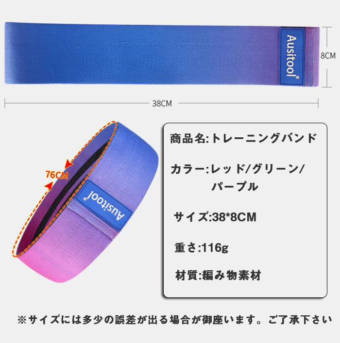 トレーニングバンド エクササイズバンド レッド グリーン パープル