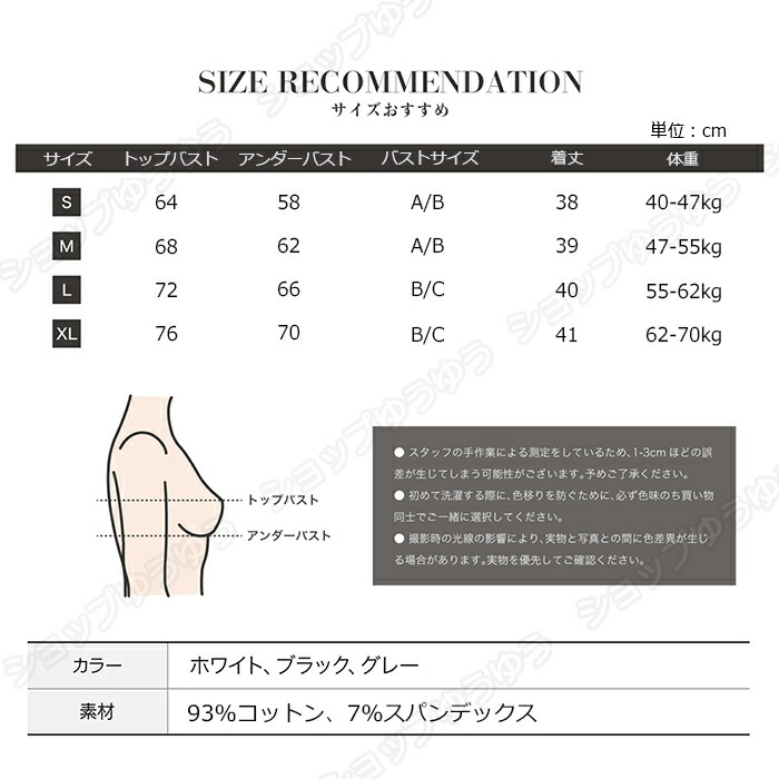 レディース 春夏秋 ショート丈 カップ レディースファッション 特集 ホワイト ブラック グレー ホワイト+ホワイト ブラック+ブラック グレー+グレー ホワイト+ブラック ホワイト+グレー ブラック+グレー S M L XL