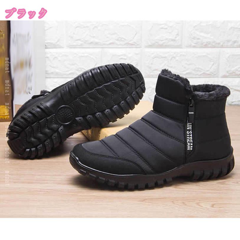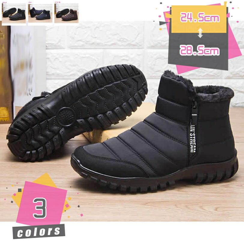 スノーブーツ メンズ ジッパー ショート 黒 防寒靴 裏起毛 冬靴 冬用ブーツ 超軽量 防寒ブーツ 防滑 ショートブーツ カジュアル 雪靴 綿靴 通勤通学 雪対応 脱ぎ履き便利 暖かい裏起毛防 耐久性