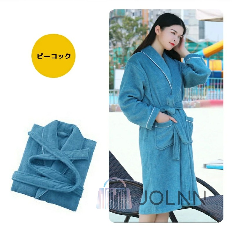 バスローブ ガウン 綿100% タオル インナー 下着 ナイトウエア 大人気! ピーコック コバルトブルー ピンク ミルクティー ホワイト グレー M L XL
