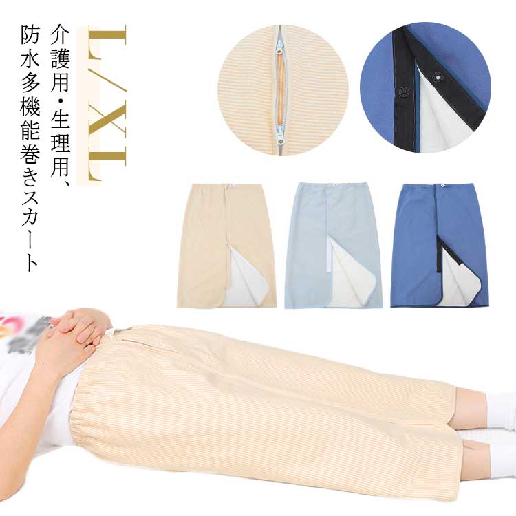 防水巻きスカート 介護用 生理用 尿漏 ストライプ/ボタンタイプ ライトブルー/ボタンタイプ ダークブルー/ジップタイプ ストライプ/ジップタイプ ライトブルー/ジップタイプ L XL