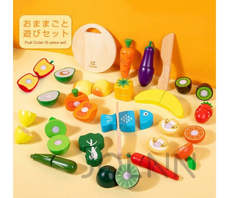 おままごとセット ままごと 木製 ごっこ遊び 木のおもちゃ 食材セット おもちゃ 切れる 野菜 やさい 果物 さかな まな板 誕生日 プレゼント クリスマスギフト キッズ 食べ物 マジックテープ 子供