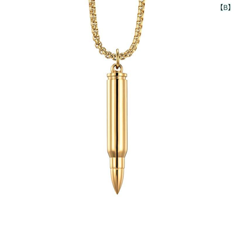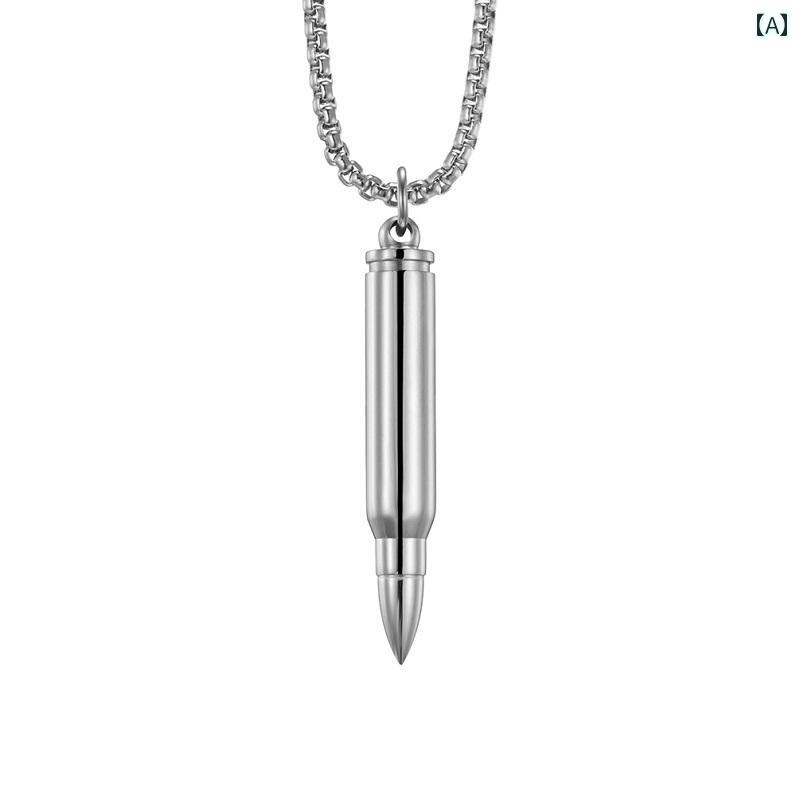 ネックレス メンズ チタン鋼 弾丸 ペ ジュエリー アクセサリー 豊富な品揃え A:スチール弾丸ペンダントスチー B:金弾丸ペンダント金チェーン C:黒弾丸ペンダント黒チェーン
