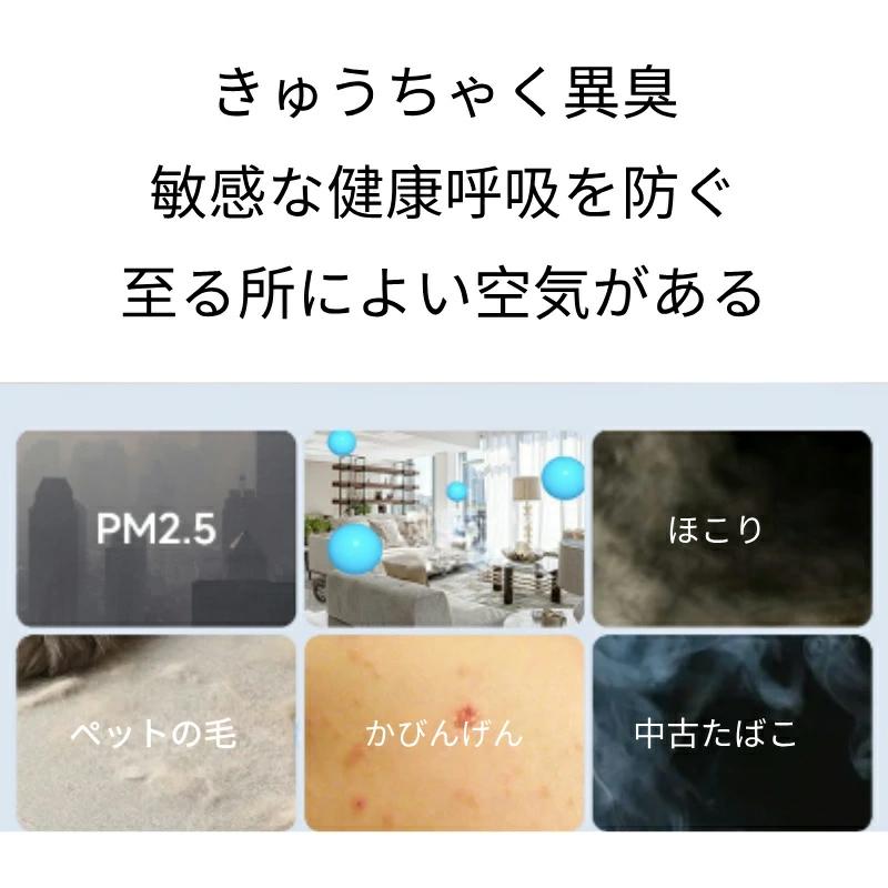 除去対象:ペットの毛・フケ・ニオイ・PM2.5・花粉・煙臭など