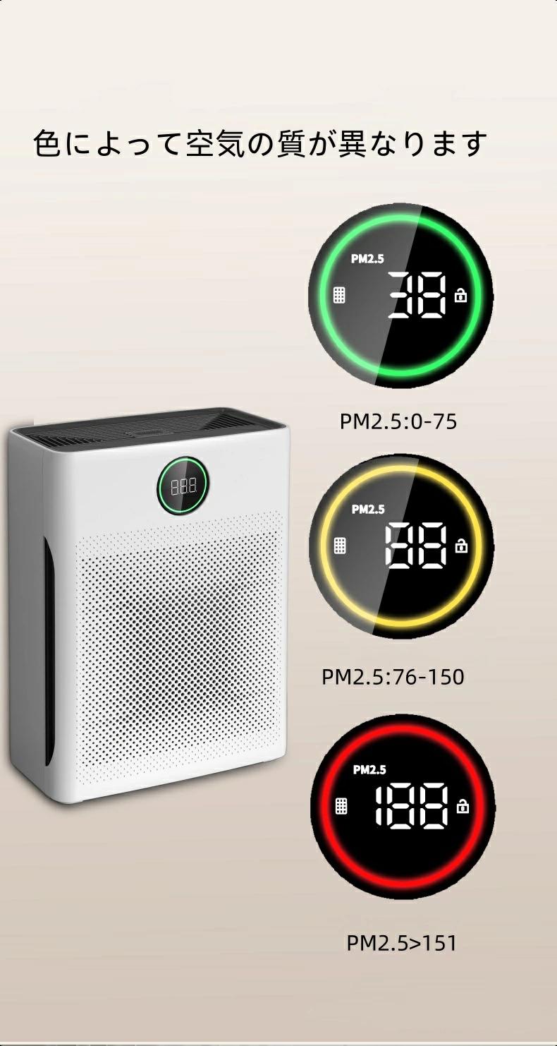空気質表示:PM2.5数値+色表示/自動風量制御あり