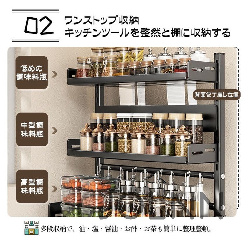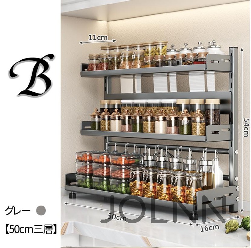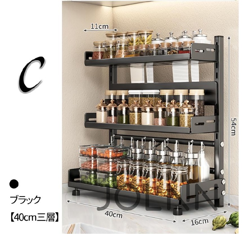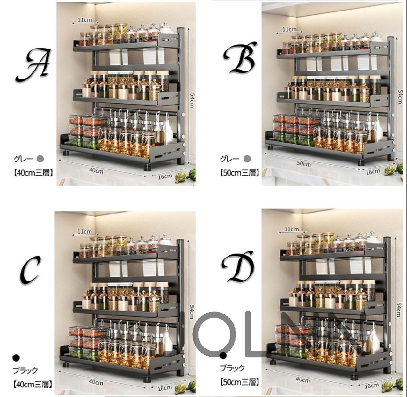 キッチン収納棚 調味料棚 キッチンラッ グレー ブラック 40cm三層 50cm三層