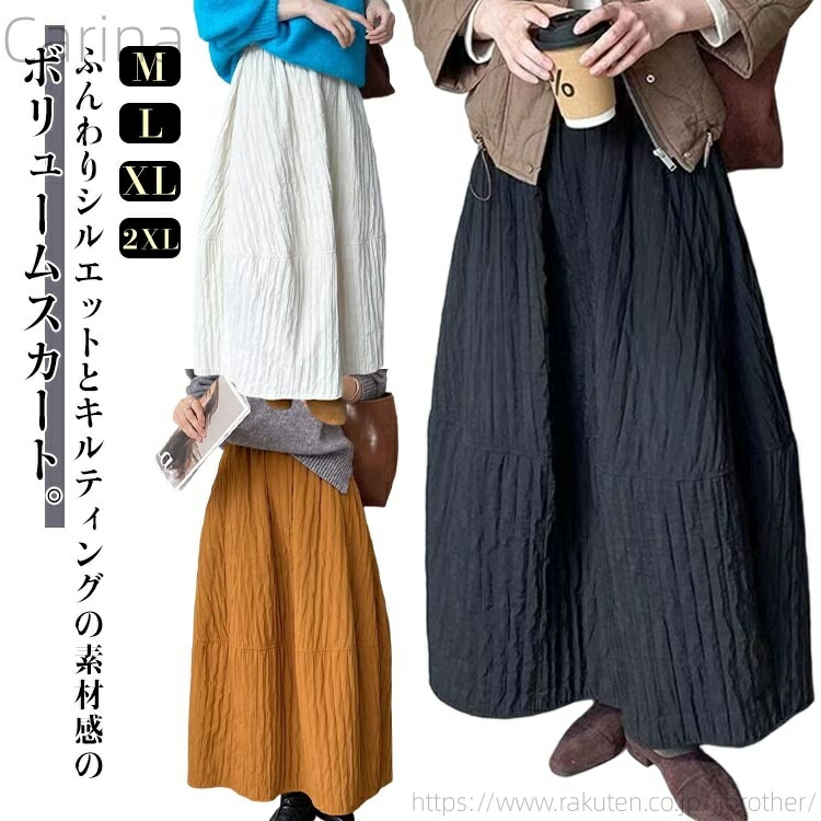 スカート フレア ロングスカート レデ レディースファッション 通販 ブラック アイボリー イエロー M L XL 2XL