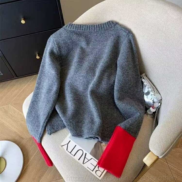 ニットセーター クルーネック 配色 バ トップス ニット セーター セーター 早い者勝ち ブルー レッド S M L XL 2XL