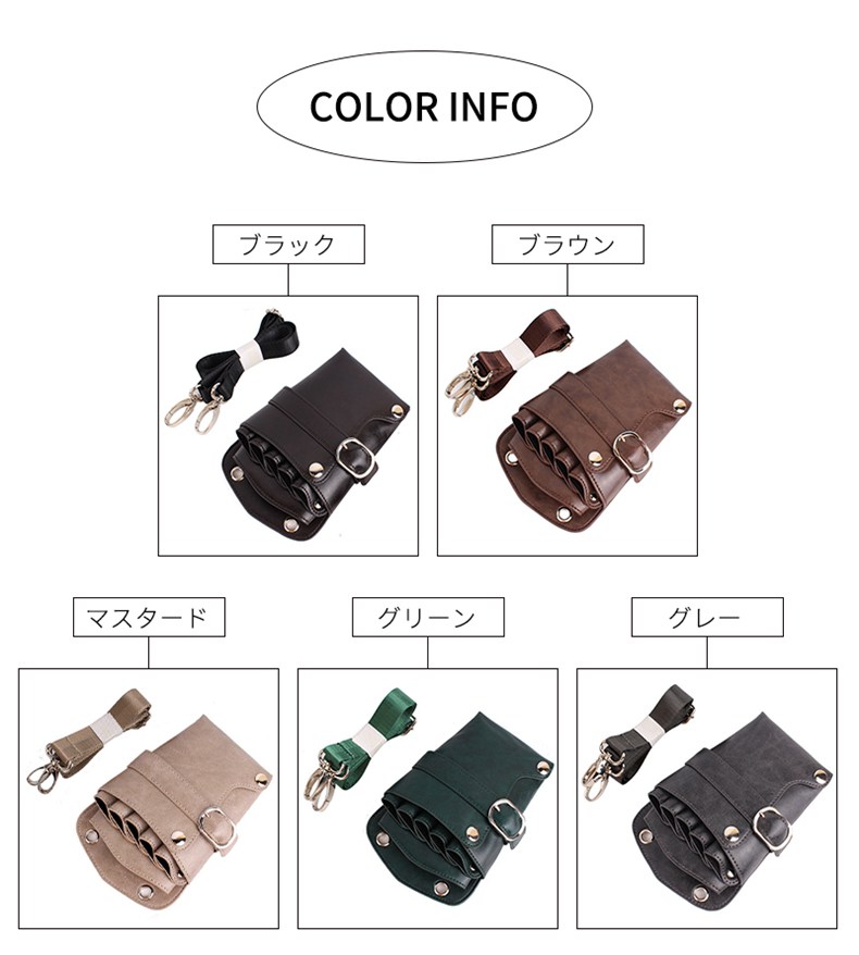 5丁収納 収納 シザーバッグ トリマー ブラック ブラウン マスタード グリーン グレー