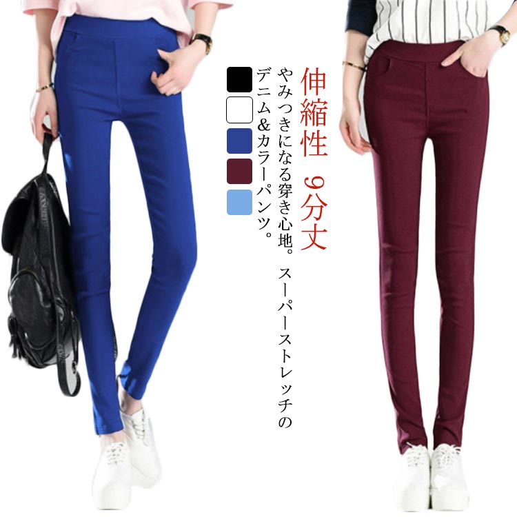 スキニーパンツ レディース カラーパン レディースファッション 超目玉商品 ブラック ホワイト ロイヤルブルー ブルー ワインレッド S(ロング丈) M(ロング丈) L(ロング丈) XL(ロング丈) 2XL(ロング丈) 3XL(ロング丈) S(9分丈) M(9分丈) L(9分丈) XL(9分丈) 2XL(9分丈) 3XL(9分丈)