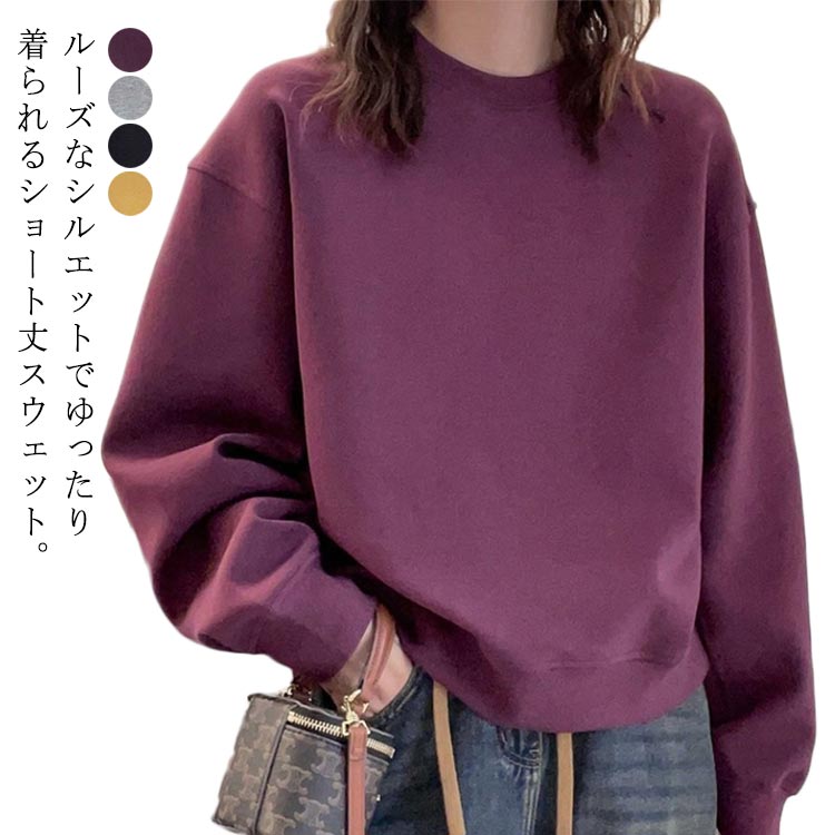 レディース トレーナー ショート丈 ト レディースファッション 特集 パープル イエロー グレー ブラック M L XL 2XL 3XL 4XL