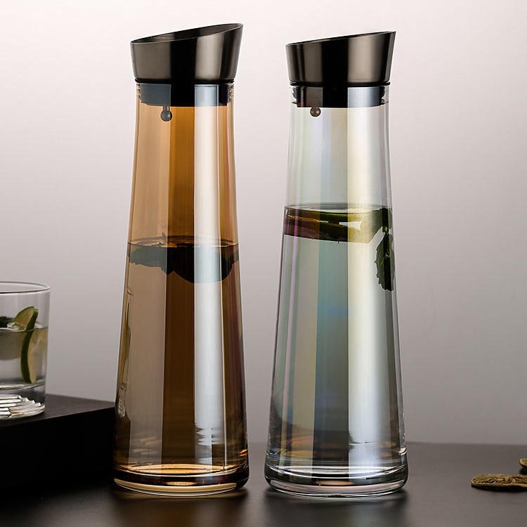 全4色 1.3L 大容量 ガラス ピッ 保存容器 調味料入れ 水差し 人気 クリア 虹 ブラック ブラウン