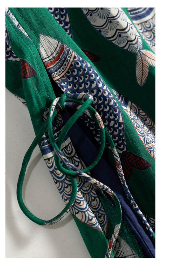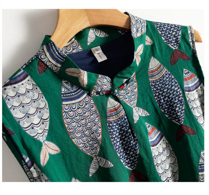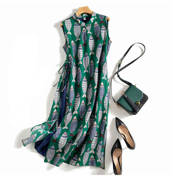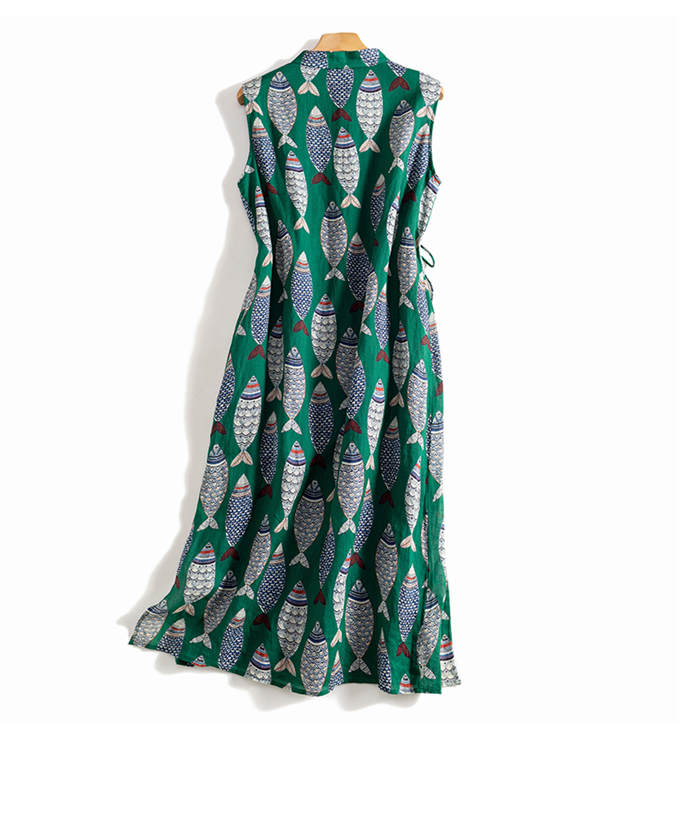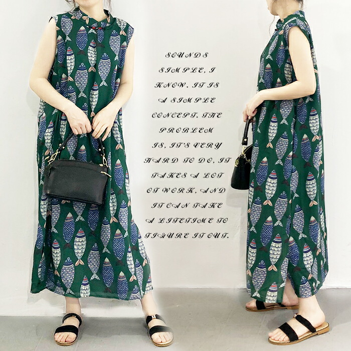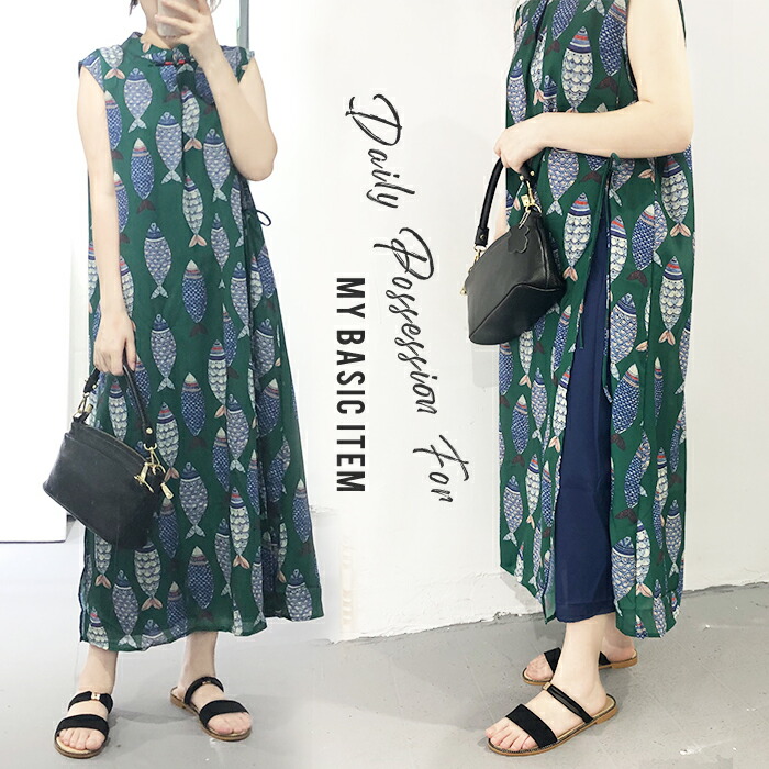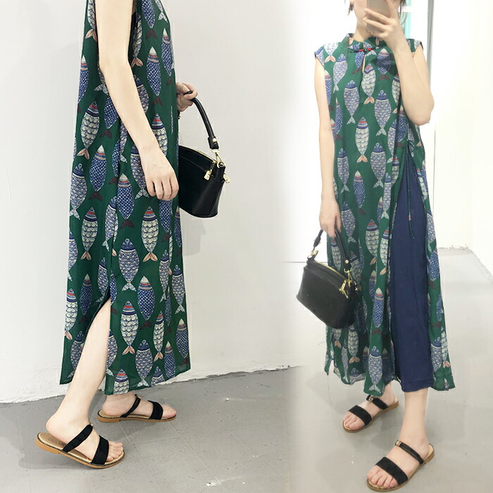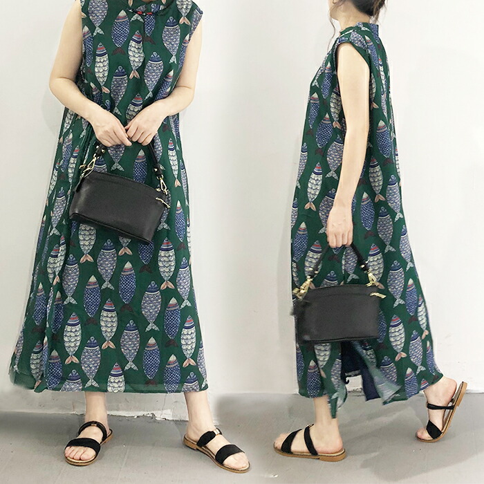 魚柄 ノースリーブ ロングワンピース M L XL XXL