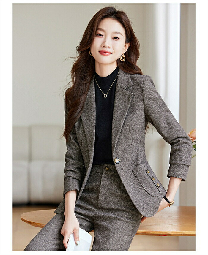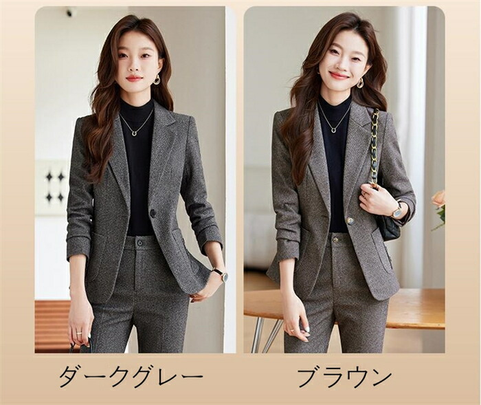 パンツスーツ スカートスーツ レディー スーツ セットアップ パンツスーツ 通販 ブラウン ダークグレー シャケット+パンツ シャケット+スカート