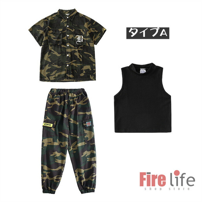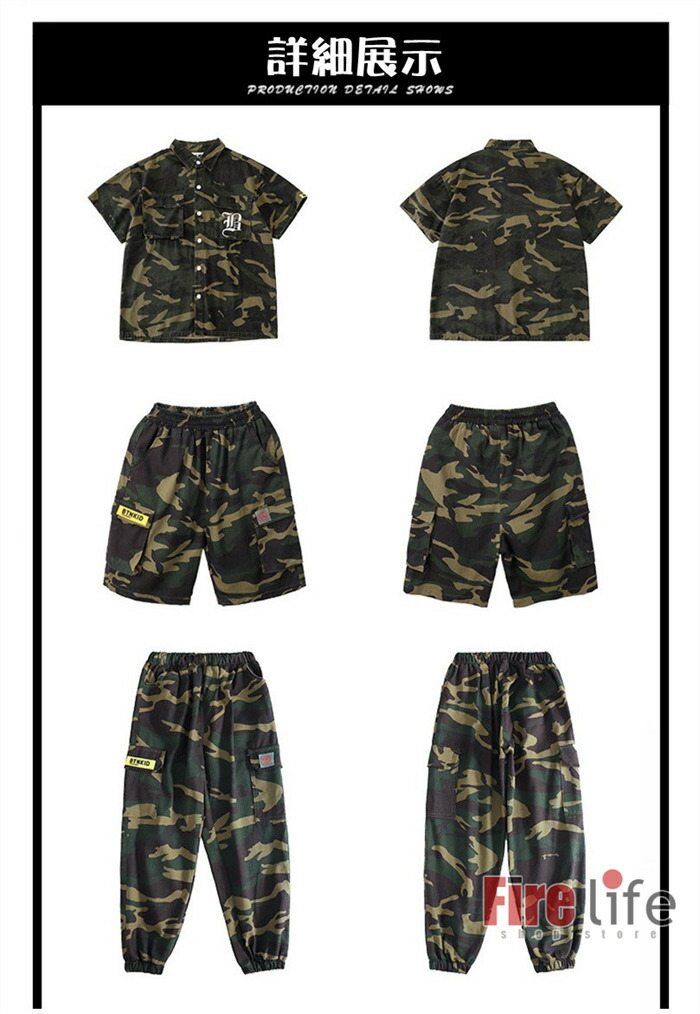 ダンス衣装 キッズ 迷彩柄 上下セット キッズ ベビー マタニティ 早い者勝ち タンクトップ単品 半袖Tシャツ単品 半袖ジャケット+短パンツ 半袖ジャケット+長パンツ セットA セットB 110cm 120cm 130cm 140cm 150cm 160cm 170cm 180cm