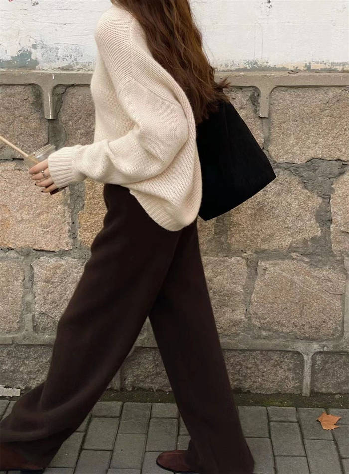 ニット ワイドパンツ レディース ニッ レディースファッション 超目玉商品 オフホワイト ダークグレー コーヒー色 ブラック S M L XL