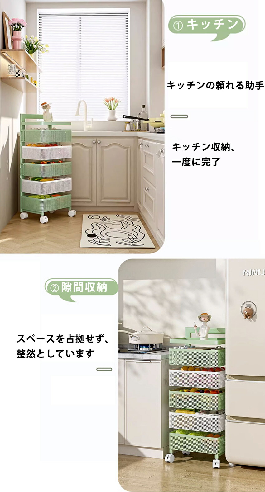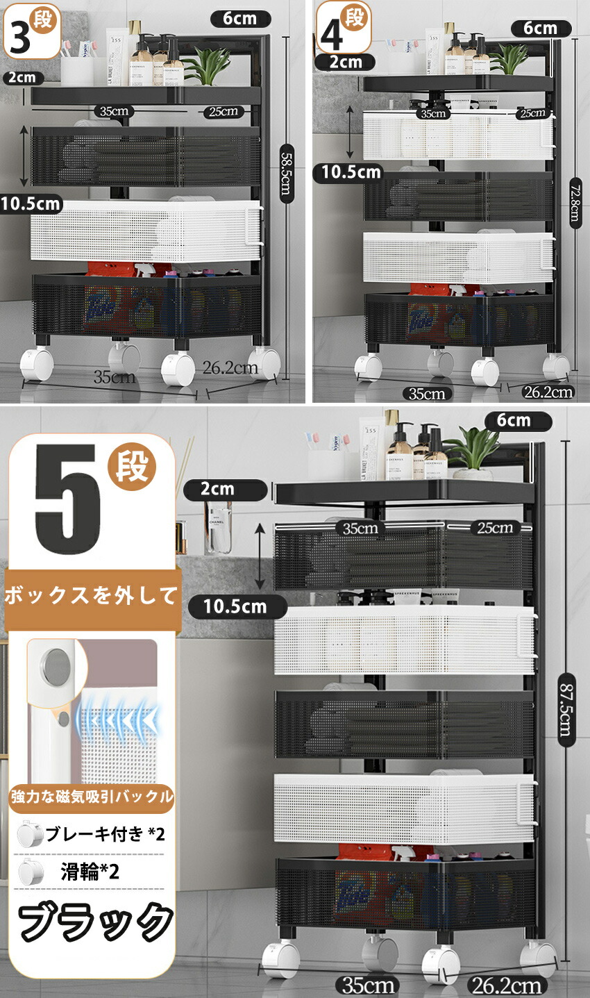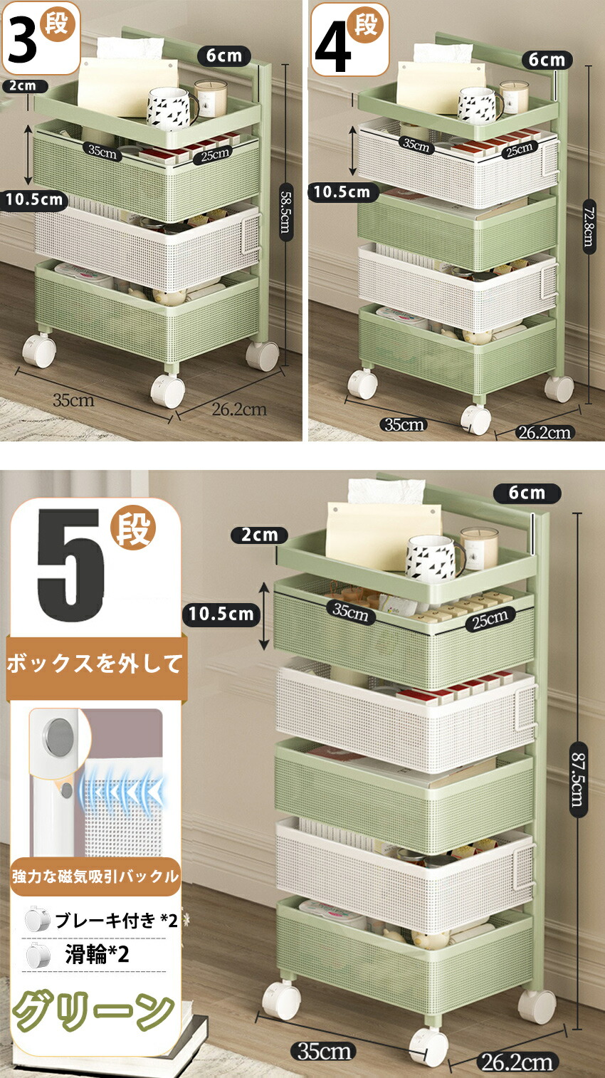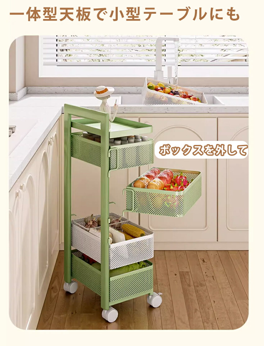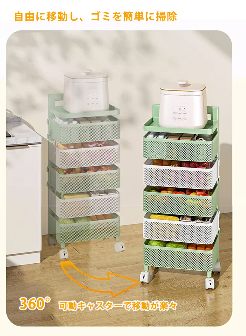 キッチンワゴン 回転 ワゴン サイドワ 3つの引き出し 4つの引き出し 5つの引き出し