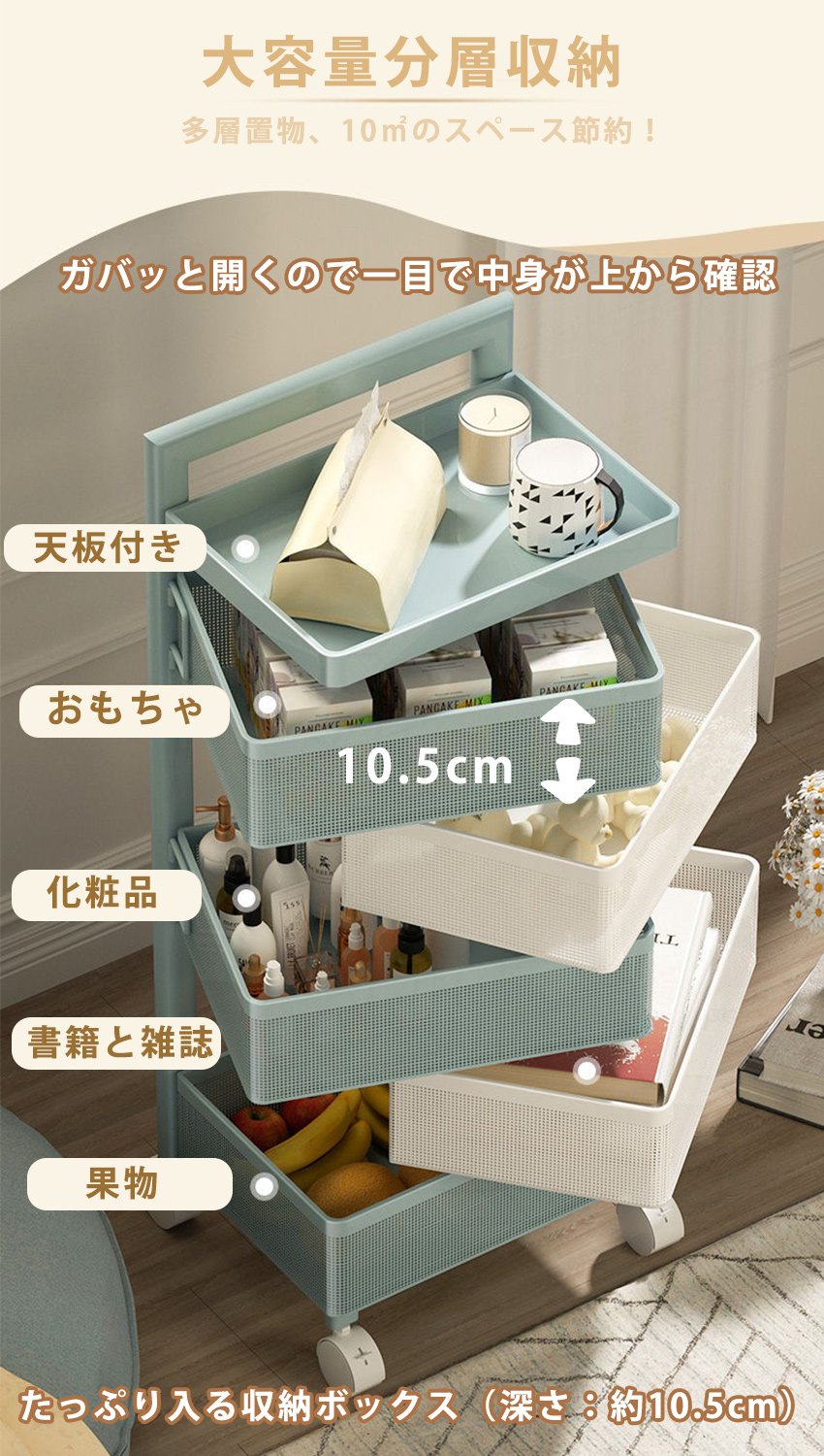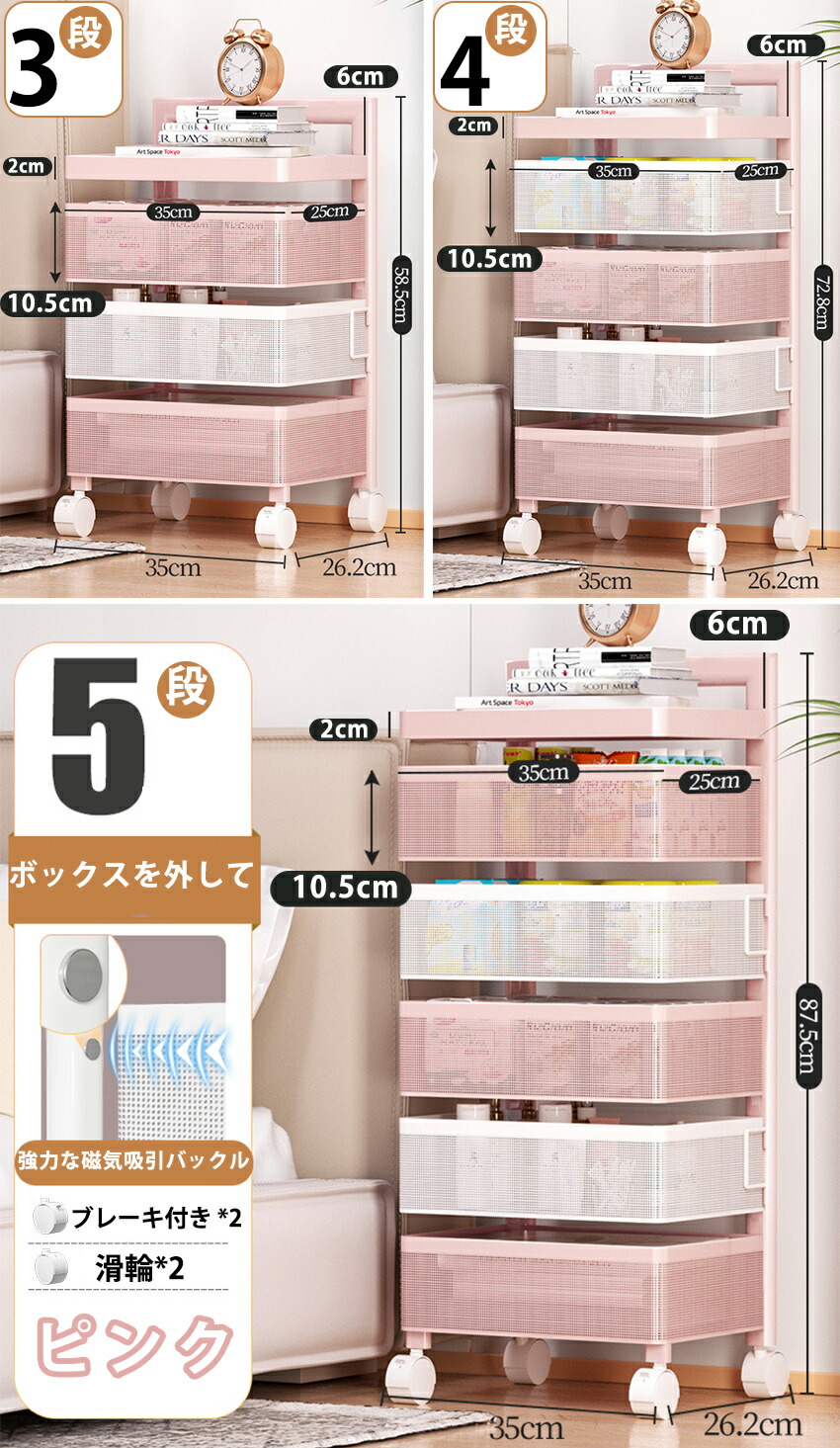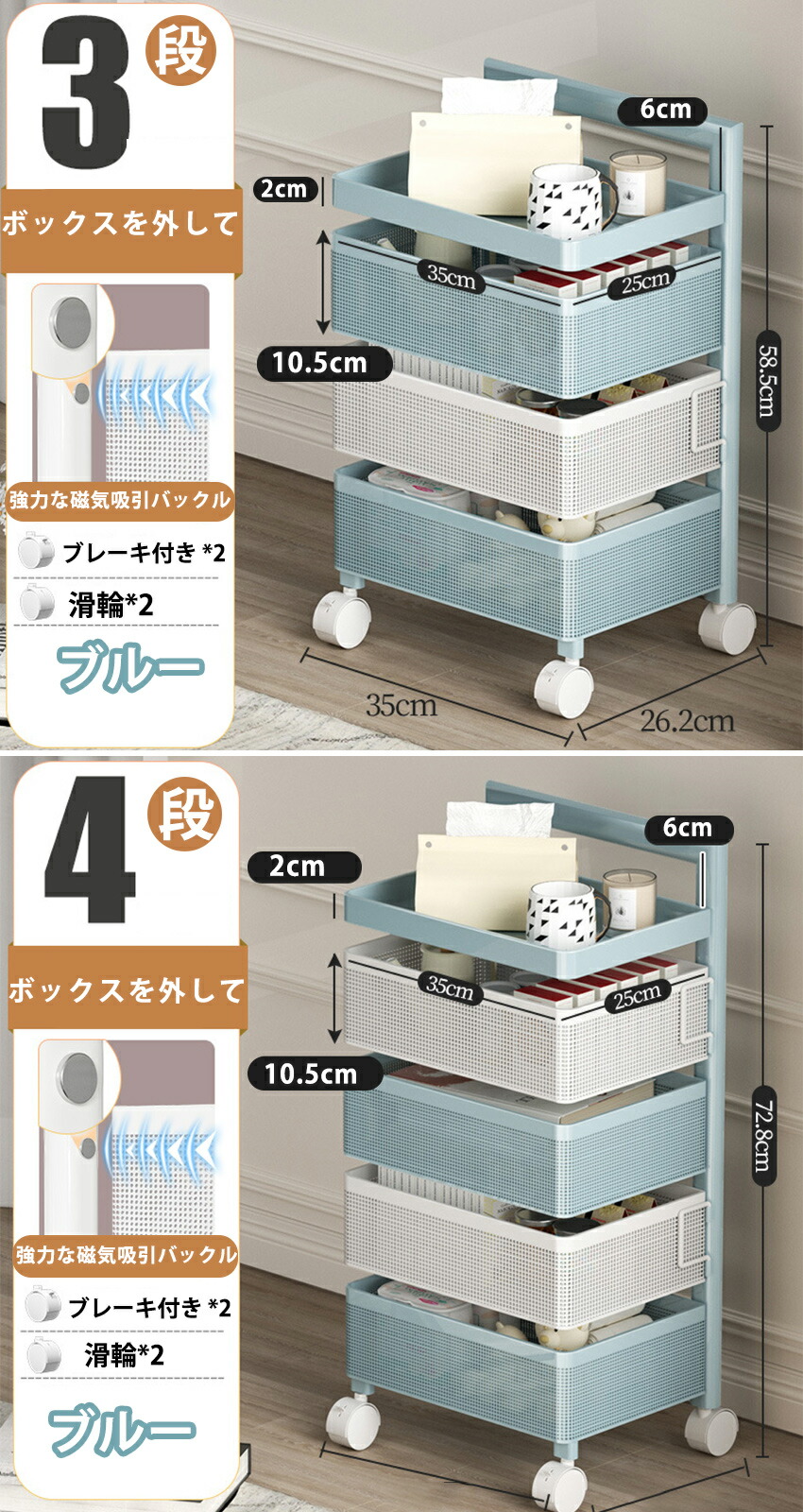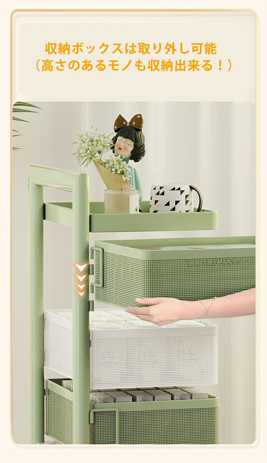 キッチンワゴン 回転 ワゴン サイドワ 3つの引き出し 4つの引き出し 5つの引き出し