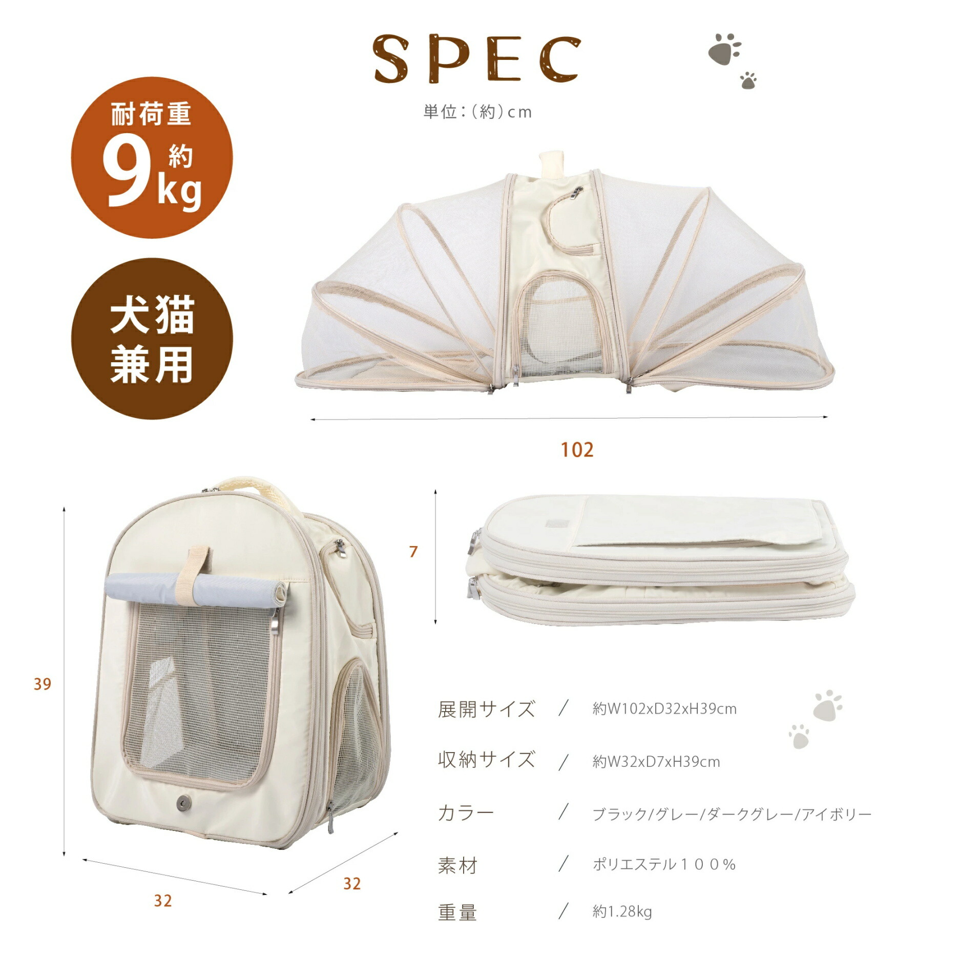 ペットキャリー キャリーバッグ キャリ ペット ペットグッズ 早い者勝ち アイボリー グレー ブラック