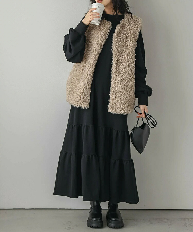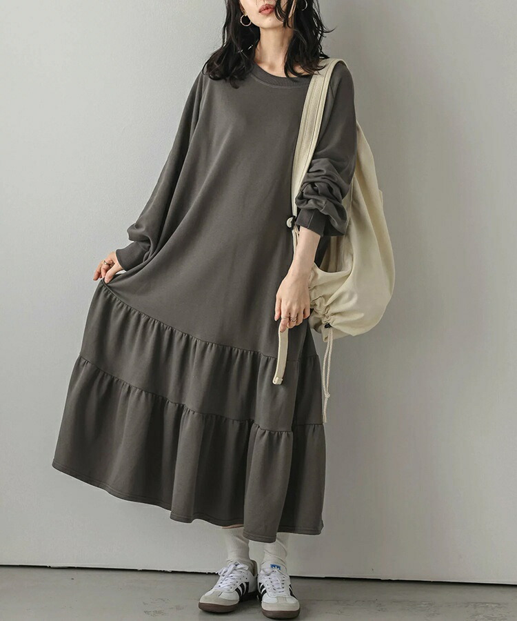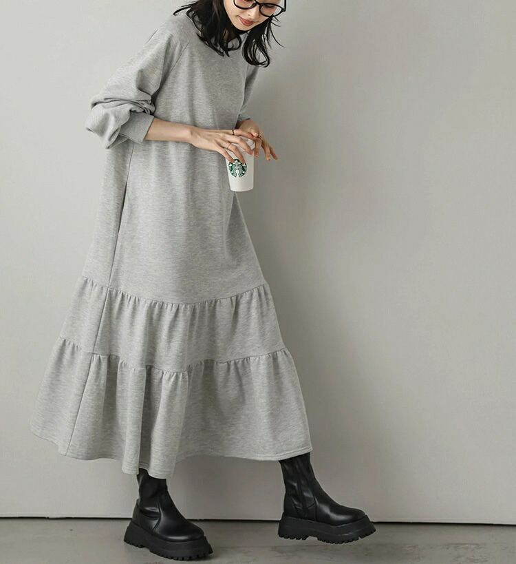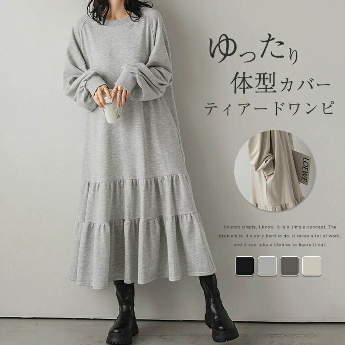 ワンピース ロングワンピース レディー レディースファッション 超目玉商品 ブラック グレー ダークグレー ベージュ M L