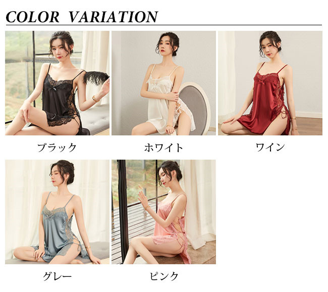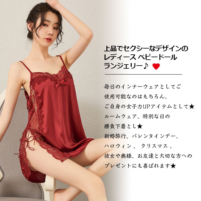 人気 オススメ ベビードール スリップ レディース インナー 下着 セット ベビードール&ショーツ 通販 ブラック ホワイト ワイン グレー ピンク M L