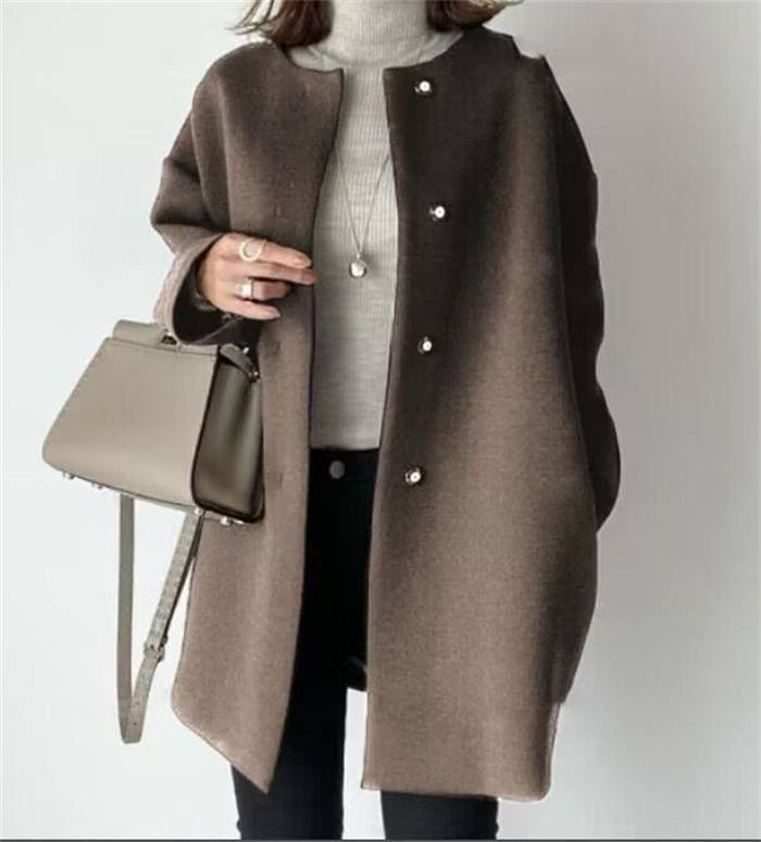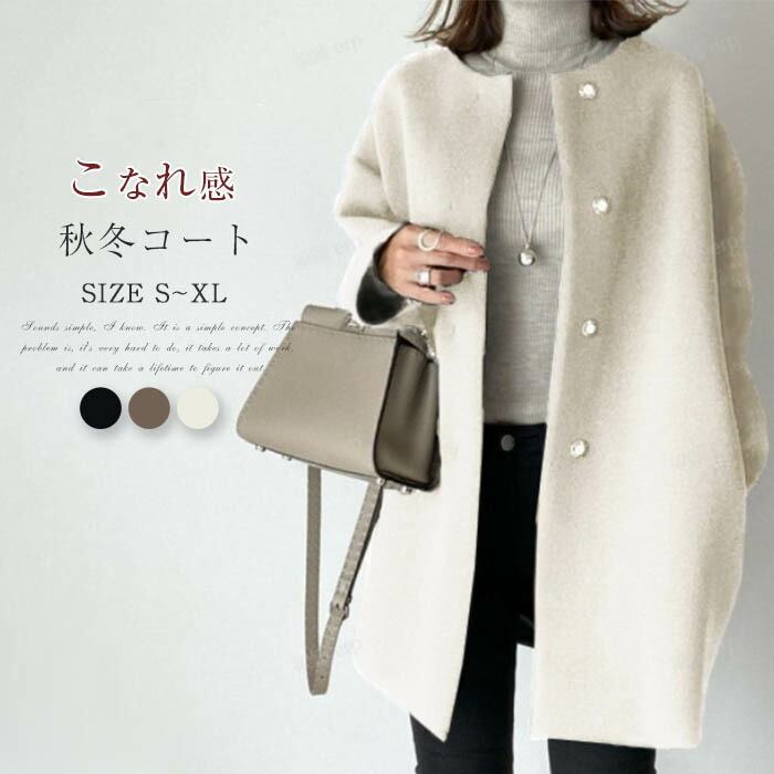 ノーカラー コート レディース 秋冬 コート ジャケット 早い者勝ち オフホワイト コーヒー ブラック S M L XL 2XL
