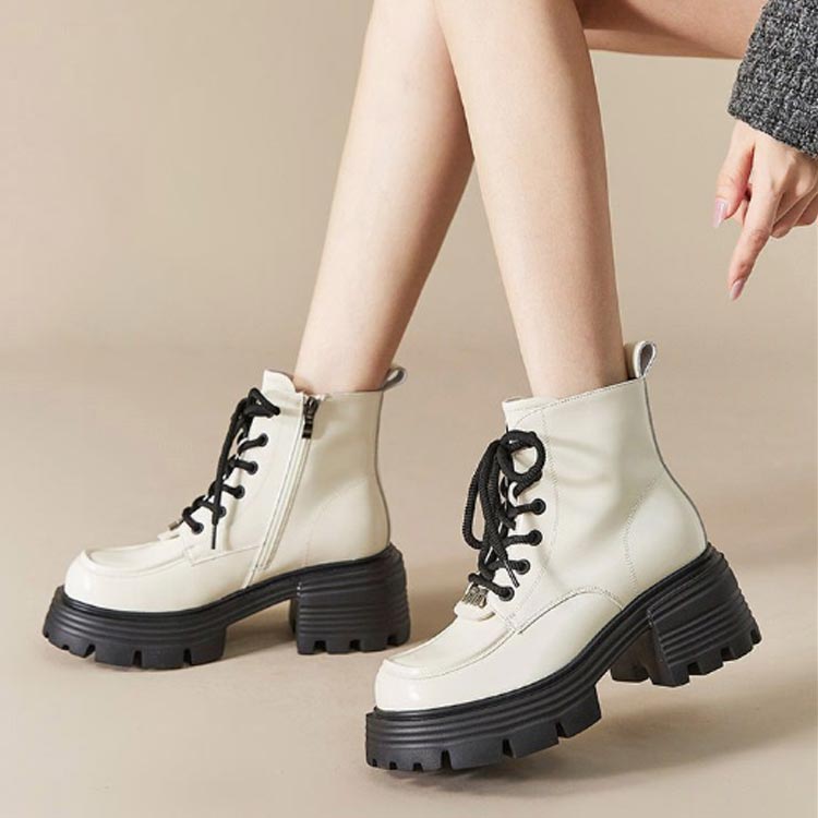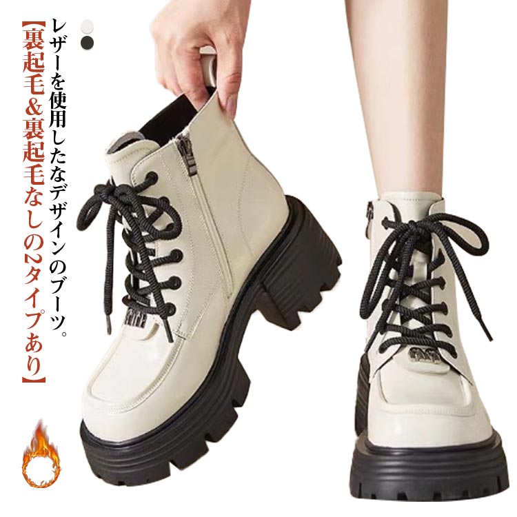 ショートブーツ 裏起毛 編み上げブーツ レディース靴 ブーツ エンジニア 豊富な品揃え ブラック&薄手 アイボリー&薄手 ブラック&裏起毛 アイボリー&裏起毛 35 36 37 38 39 40