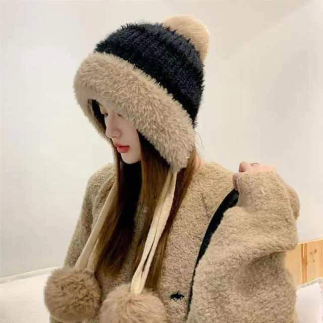 ニット帽 ポンポン 耳あて付き レディ バッグ 小物 ブランド雑貨 通販 ホワイト ブラック コーヒー