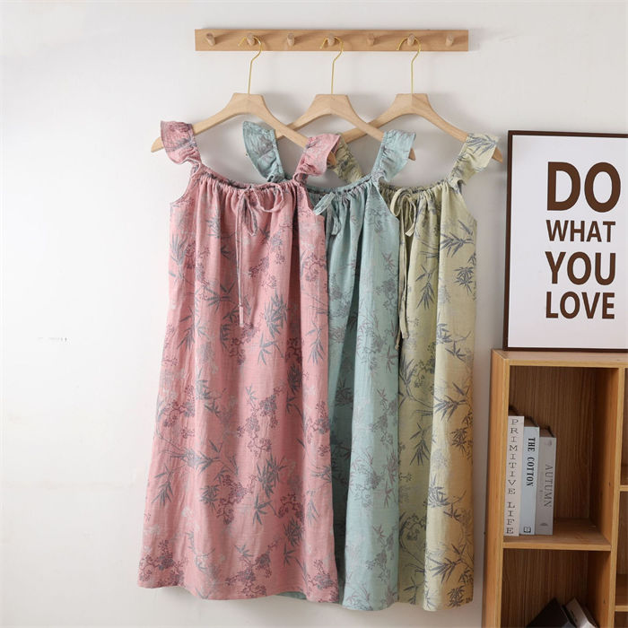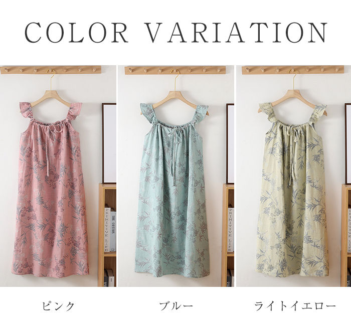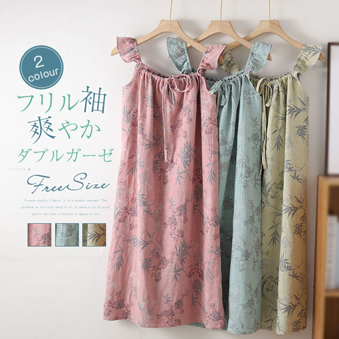 ダブルガーゼ ネグリジェ ワンピース インナー 下着 ナイトウエア 新作 ピンク ブルー ライトイエロー