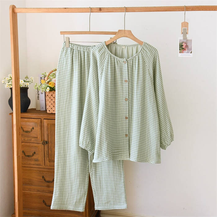 チェック柄 4重ガーゼ パジャマ レデ レディース ナイトウェア ルームウェア パジャマ 新登場! ピンク イエロー グリーン L XL 2XL