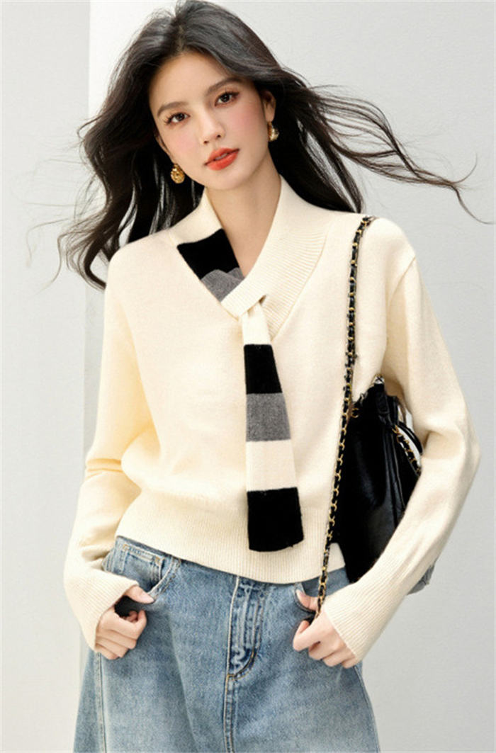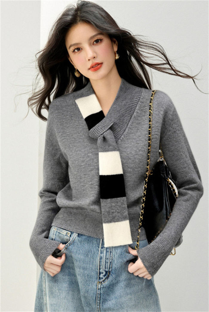 ニット セーター レディース 配色 長 トップス ニット セーター セーター 豊富 グレー 白 黒 S M L