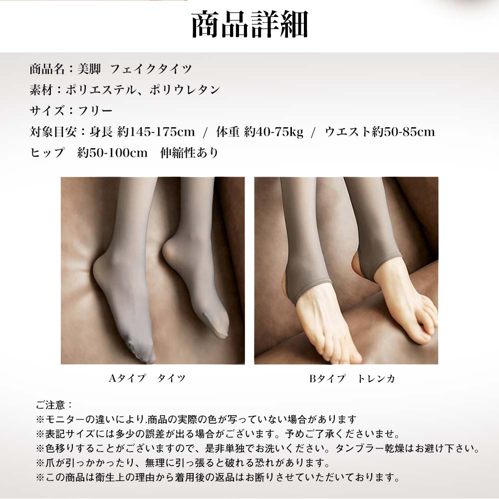 フェイクタイツ 透け感 タイツ トレン インナー 下着 ナイトウエア 人気 ブラック グレー ブラウン ベージュ Aタイプ タイツ Bタイプ トレンカ