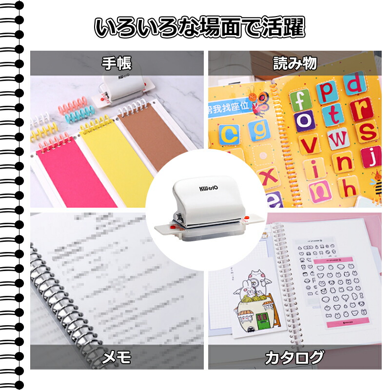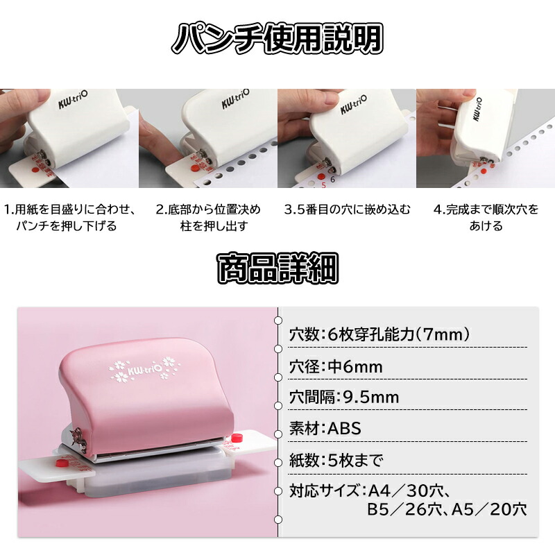 穴あきパンチ 穴あけパンチ ルーズリー 文房具 事務用品 ホッチキス 穴あきパンチ 穴あきパンチ 通販 ホワイト パープル ブルー グリーン ピンク