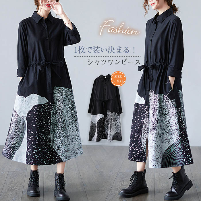 シャツ ワンピース 長袖 シャツワンピ レディースファッション 続々登場 L XL XXL
